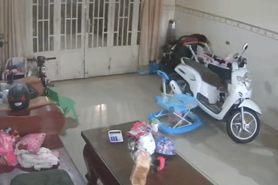 Người phụ nữ cuống cuồng quay lại cứu con khi mái nhà đổ sập trong tích tắc