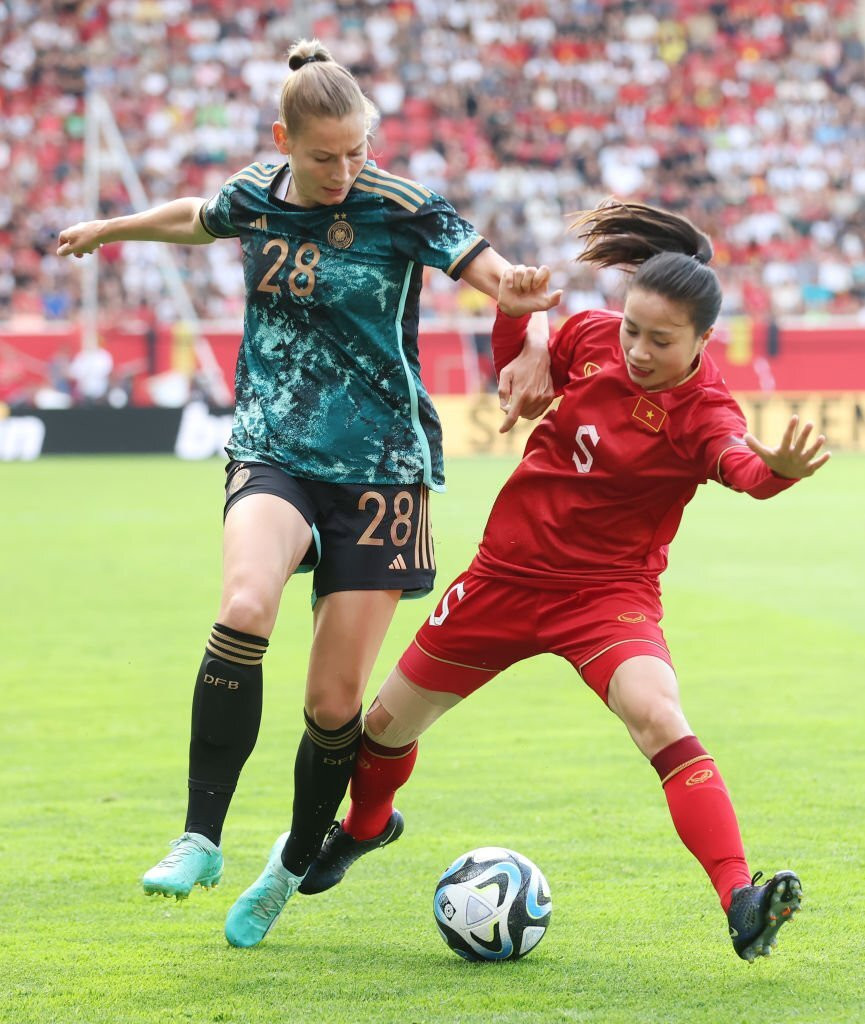 Nguyễn Thanh Nhã khiến người hâm mộ bóng đá Việt Nam phấn khích với pha bứt tốc "xé gió" rồi ghi bàn vào lưới tuyển nữ Đức đêm qua.