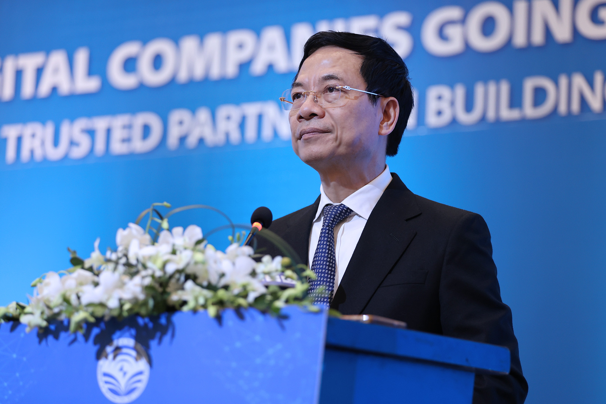 “Doanh nghiệp hãy gắn sứ mệnh của mình với sứ mệnh quốc gia. Hãy gắn vận mệnh của mình với vận mệnh quốc gia. Và vì thế mà doanh nghiệp phát triển bền vững và trường tồn. Bởi vì dân tộc và quốc gia là trường tồn. Gìn giữ non sông, làm rạng danh non sông là sứ mệnh mới của doanh nghiệp Việt Nam, trong đó đặc biệt là các doanh nghiệp công nghệ số Việt Nam”, Bộ trưởng kêu gọi.