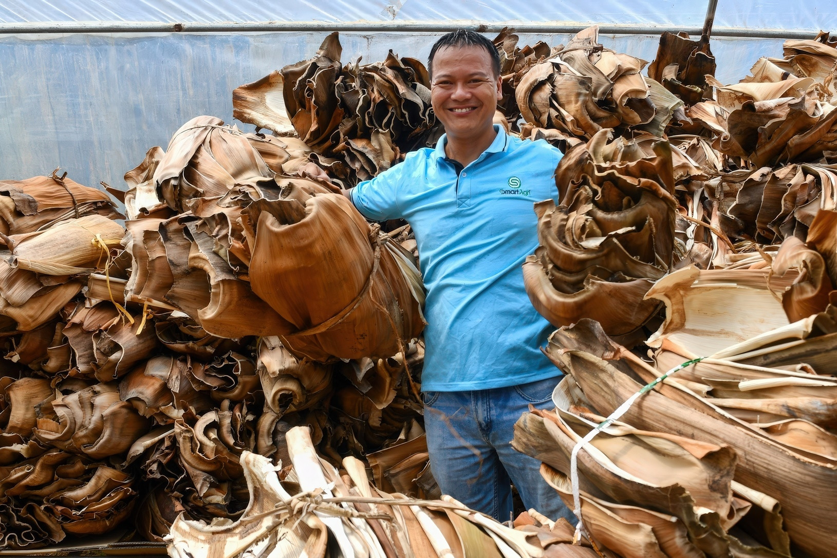Những chiếc mo cau tưởng chừng bỏ đi được người đàn ông tại Quảng Ngãi tái sinh thành chén, đĩa, hộp cơm... để xuất khẩu. Đặc biệt, một hãng hàng không đã mua những sản phẩm này để phục vụ hành khách hạng thương gia.