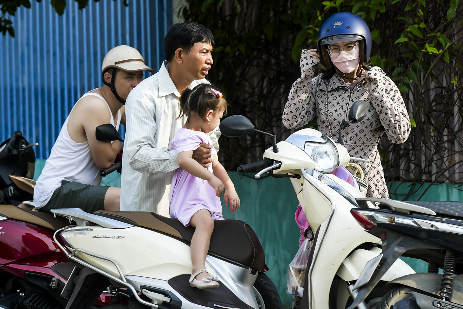 Bé T.G.H. (SN 2019, trú tại xã Minh Khai, huyện Vũ Thư, tỉnh Thái Bình) được đón lên xe cùng các bạn.