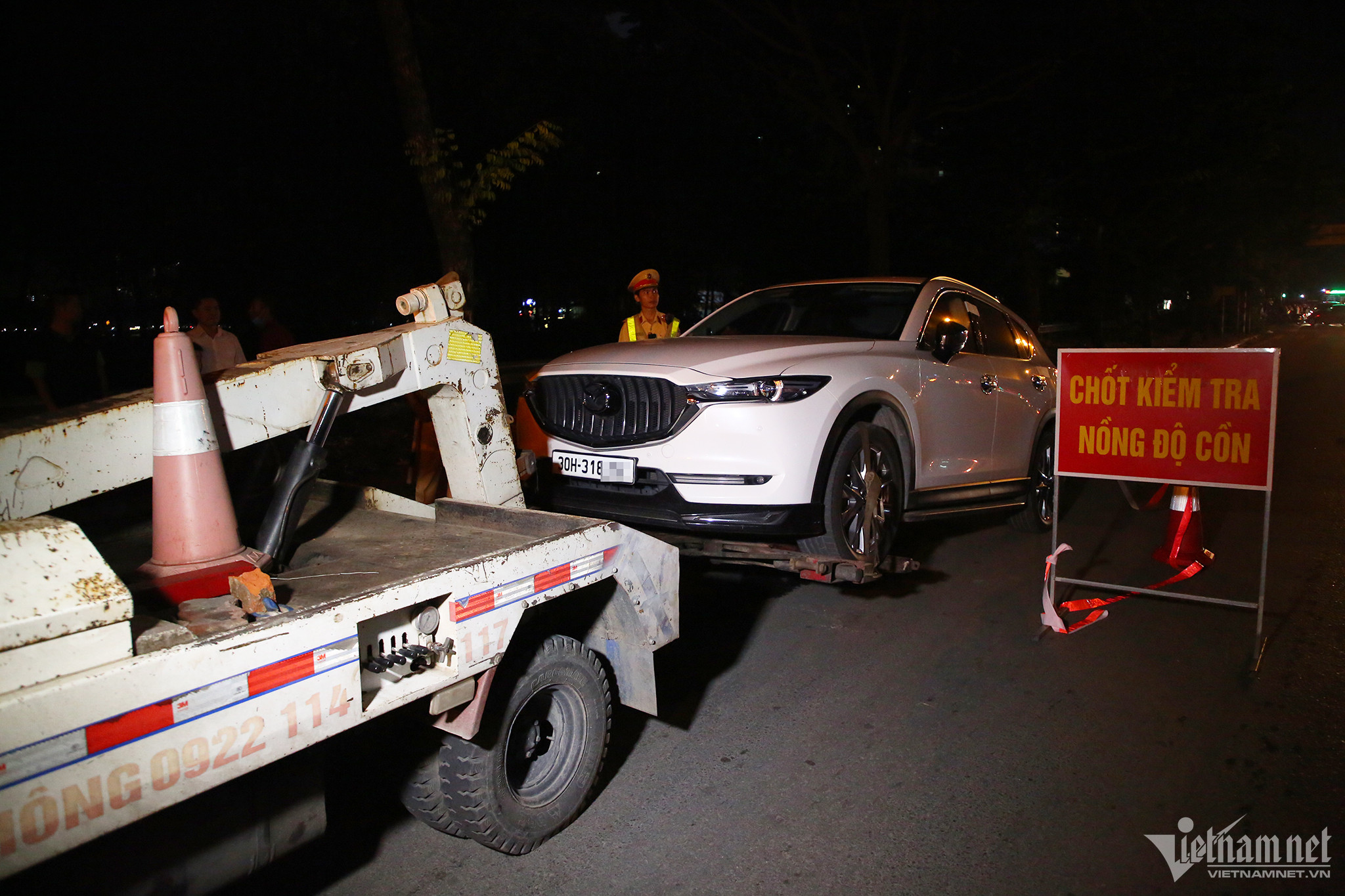 Đến 21h45, tổ công tác yêu cầu dừng ô tô nhãn hiệu Mazda mang BKS 30H-318.XX để kiểm tra. Tuy nhiên, nam tài xế bất ngờ xuống xe và không chấp hành kiểm tra nồng độ cồn.