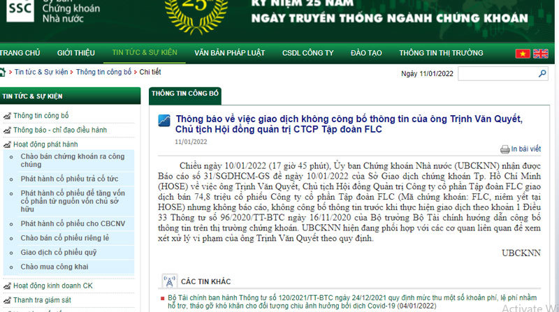 Giao dịch 75 triệu cổ phiếu FLC, trị giá khoảng 1.600-1.800 tỷ đồng của ông Trịnh Văn Quyết trong phiên 10/1 đã bị hủy.