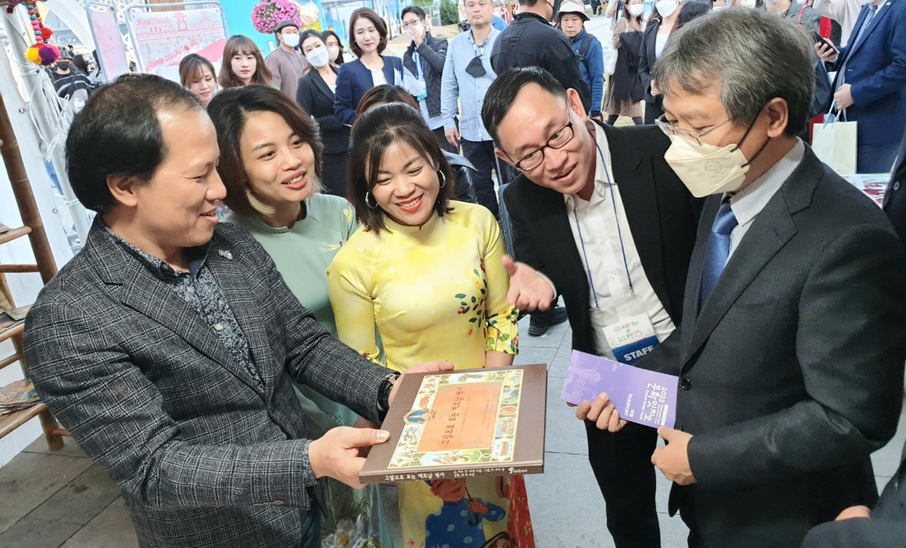 Trong khuôn khổ Lễ hội kết nối văn hoá diễn ra tại Hàn Quốc, không chỉ áo dài, những đặc sản của Việt Nam được trưng bày mà còn có cả một không gian sách với hơn 200 đầu sách được trưng bày.