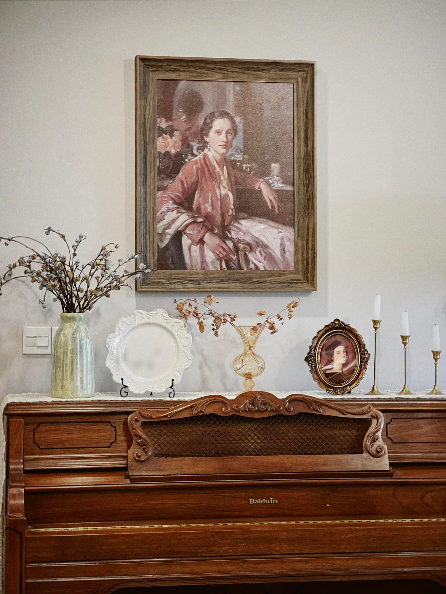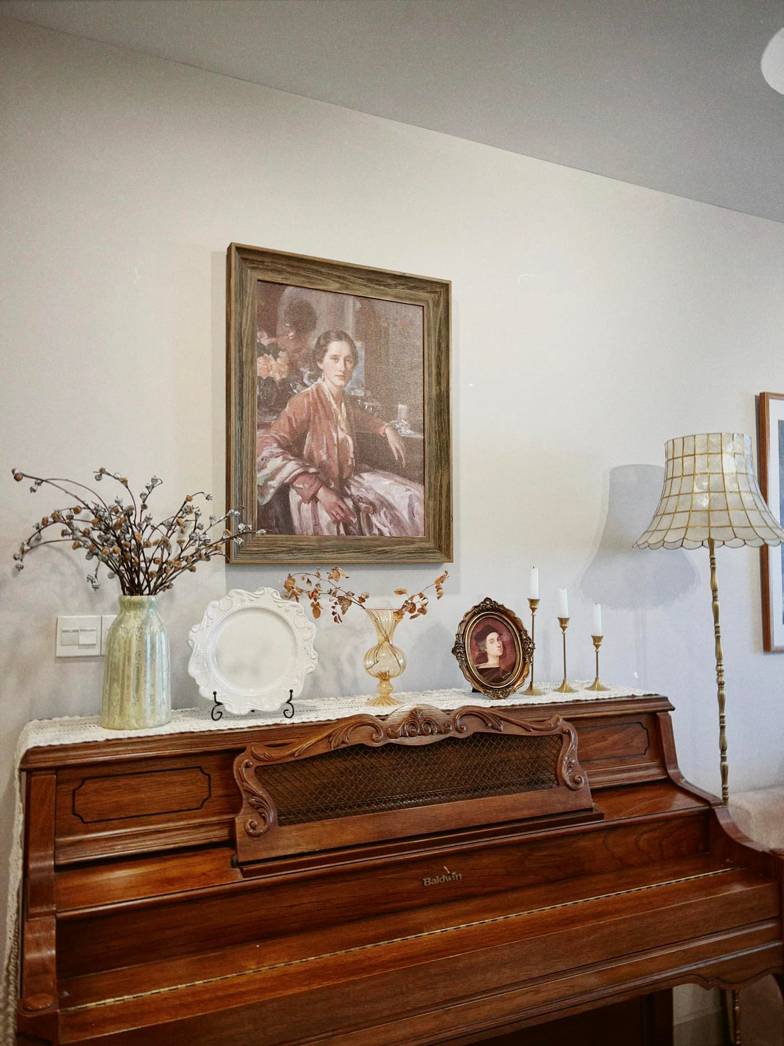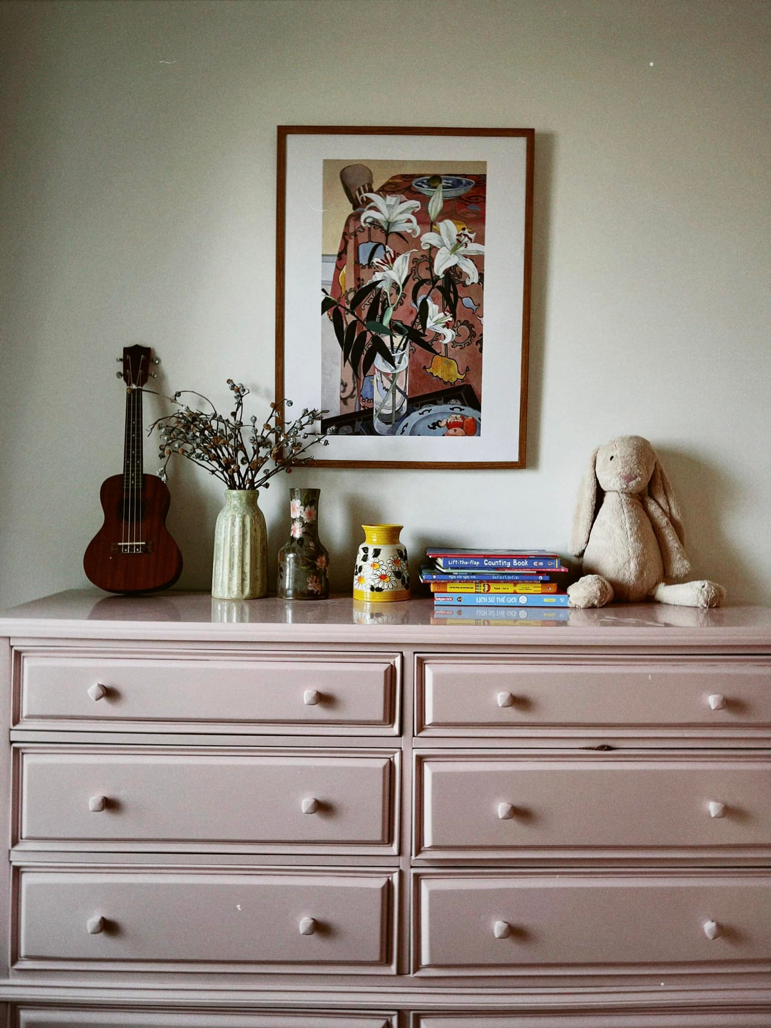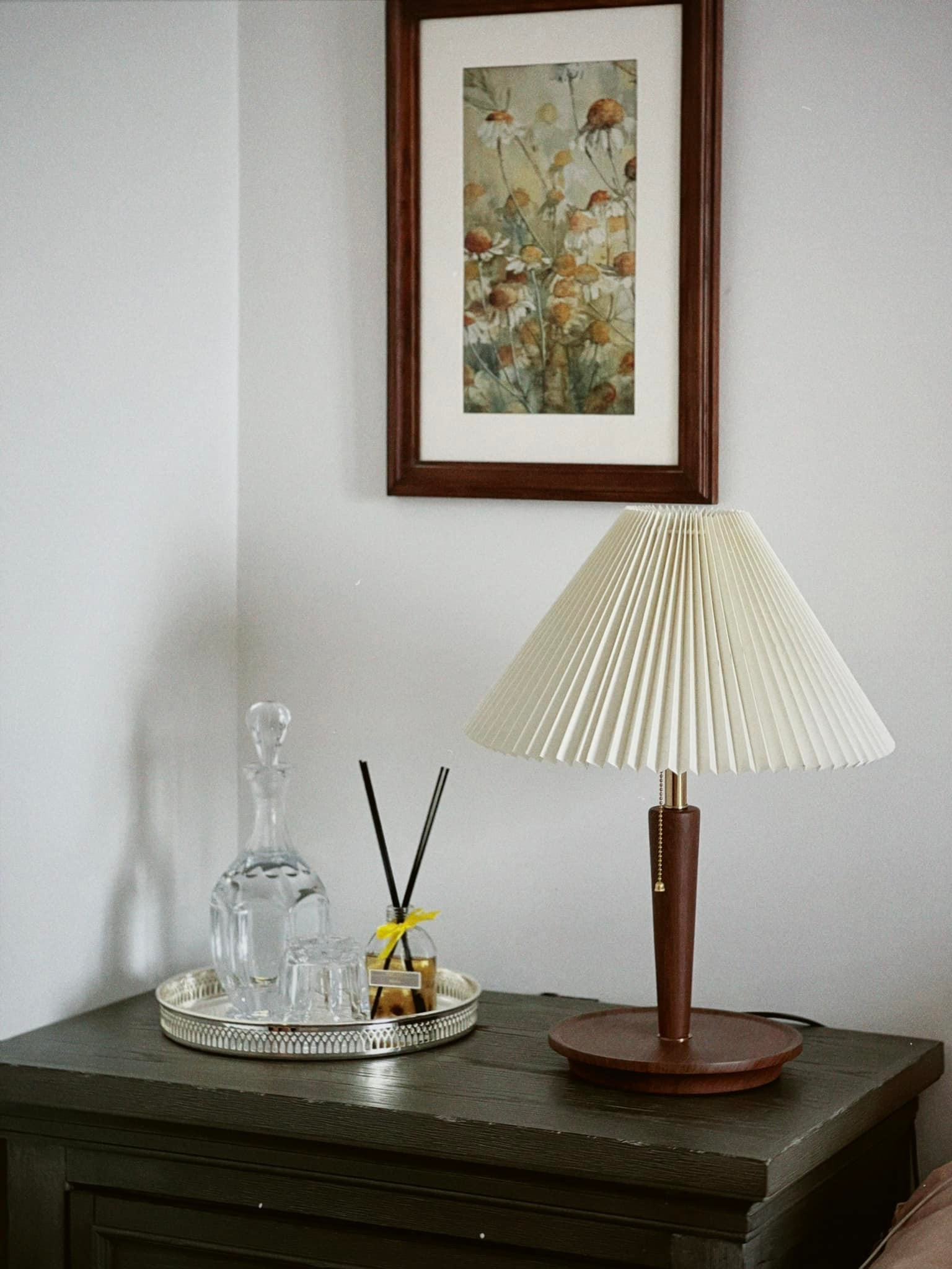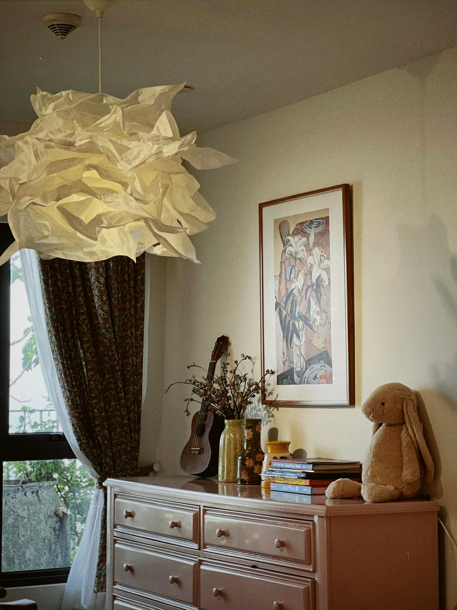Một bức tranh, bình hoa khô, chiếc đèn ngủ... đủ để biến một góc đơn điệu thành khu đậm chất vintage, thỏa sức sống ảo cho gia chủ.