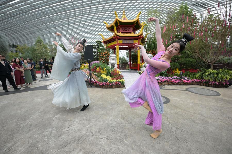 SINGAPORE - Triển lãm hoa mùa xuân chào đón tết Nguyên đán Ất Tỵ 2025, được tổ chức trong khuôn viên Flower Dome của Gardens by the Bay năm nay có chủ đề "đổi mới và đoàn kết gia đình".