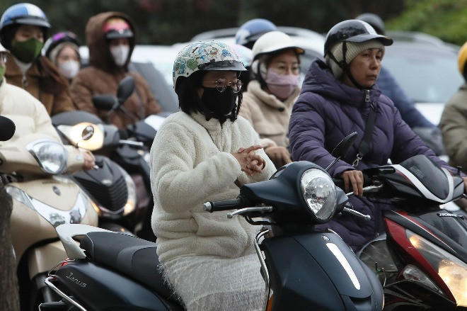 Sáng nay, khối không khí lạnh ảnh hưởng đến Bắc Bộ khiến nền nhiệt tại Hà Nội giảm sâu. Nhiều người tham gia giao thông co ro trong ngày đầu đi làm sau kỳ nghỉ Tết Nguyên đán Ất Tỵ.