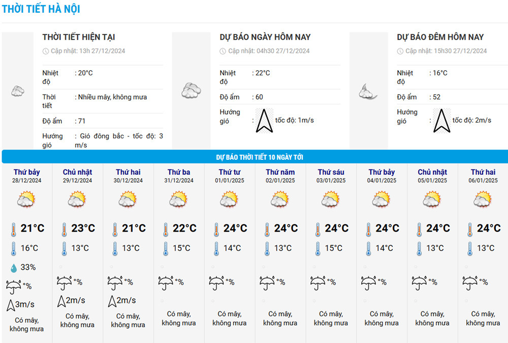 Theo dự báo của cơ quan khí tượng, không khí lạnh tăng cường nhưng các khu vực trên chủ yếu rét đậm về đêm và sáng sớm; ban ngày có nắng, trời lạnh quanh ngưỡng 20 độ.