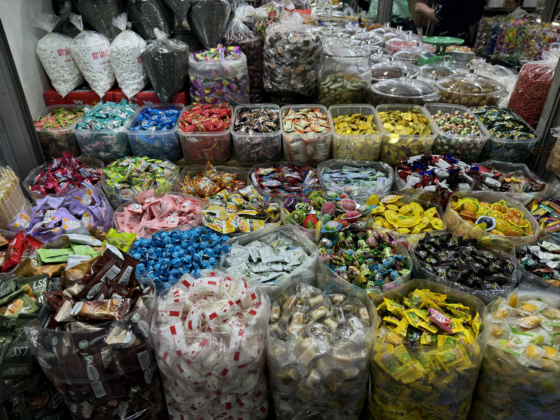 Giống như nhiều chợ truyền thống khác, bên trong chợ Mơ cũng bày bán đa dạng mặt hàng, chia thành từng khu như đồ khô, quần áo, vải vóc,…