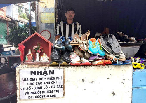 Người thanh niên căm cụi sửa chữa lại chiếc giày đã hỏng. Từng mũi kim, anh may giáp vòng chiếc đế giày. Hết một chiếc rồi tiếp một chiếc khác, anh giúp người nghèo bằng tấm lòng của một người thợ cũng nghèo...