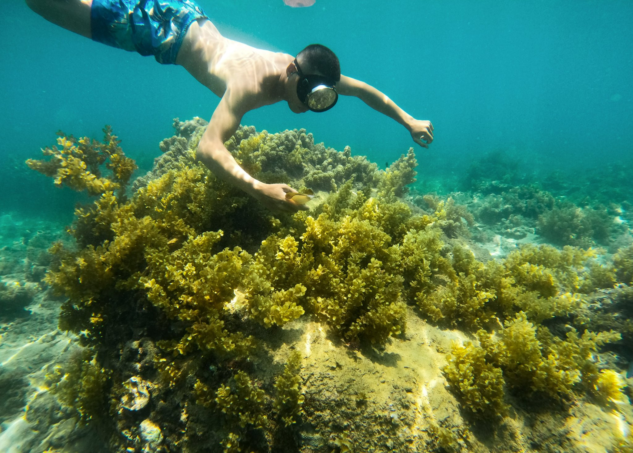 Lặn dưới làn nước trong xanh mát lạnh, len lỏi vào giữa những đám rong mơ mềm mại, chạm tay vào những con ốc hay lãng đãng ngồi trên chiếc thuyền thúng, nhẹ tay chèo dạo quanh những rạn san hô… sẽ là trải nghiệm tuyệt vời đối với mọi du khách - Ảnh: Nguyễn Dũng, Công Tâm