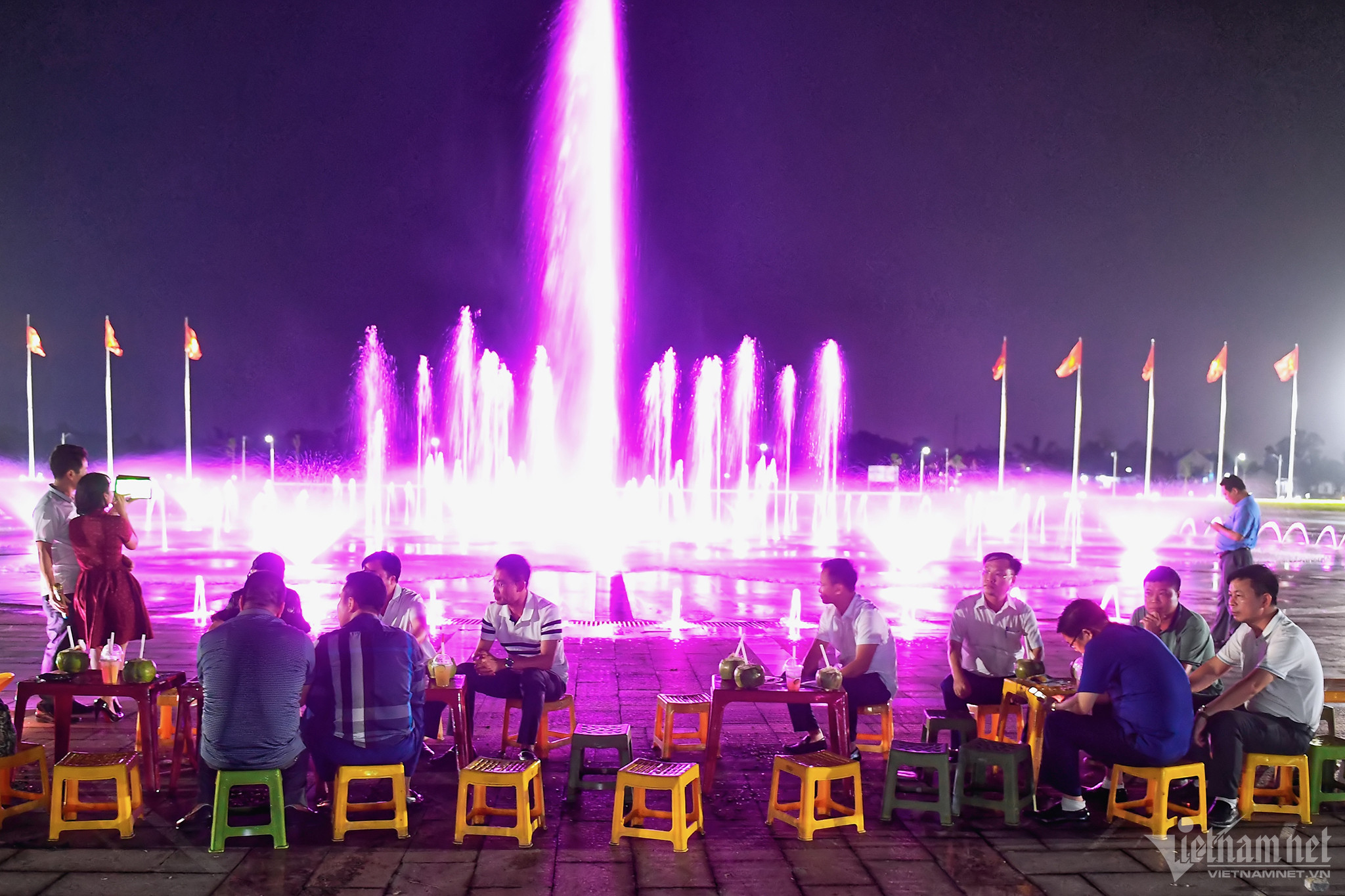 Ngoài ra, nhiều nhóm bạn có thể hát karaoke ngay bên cạnh đài phun nước nhiều màu sắc mà không làm ảnh hưởng đến những người xung quanh.
