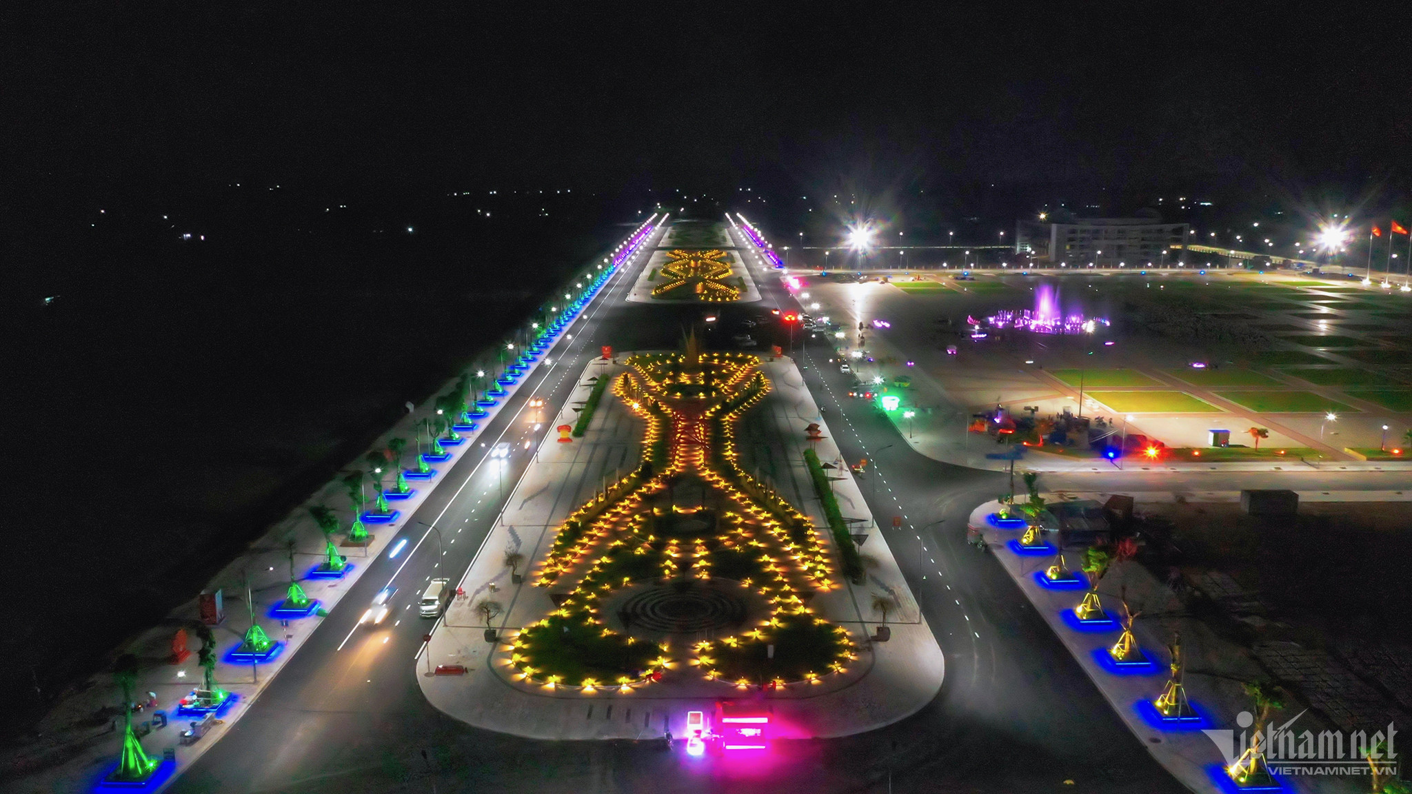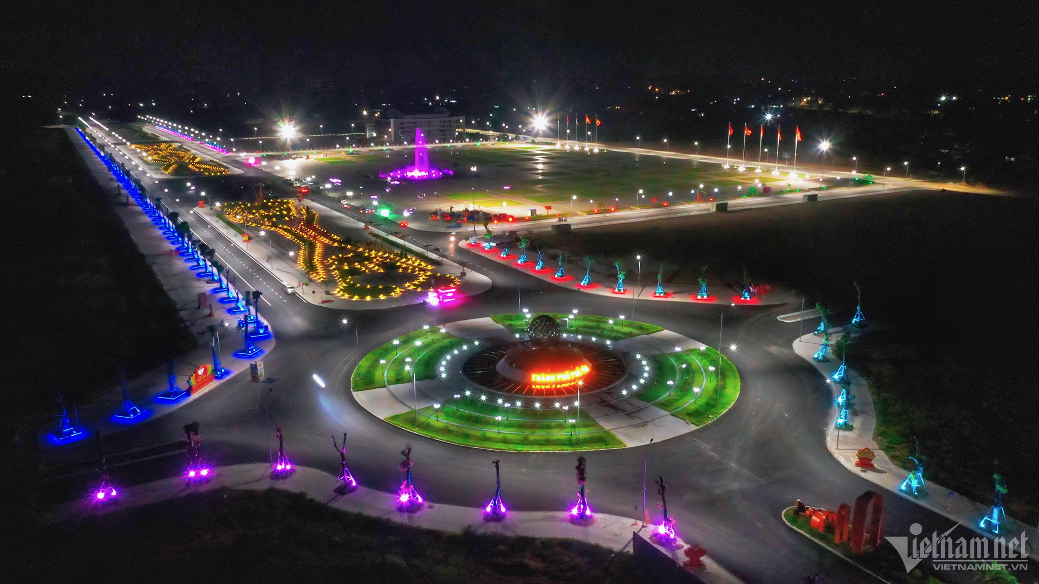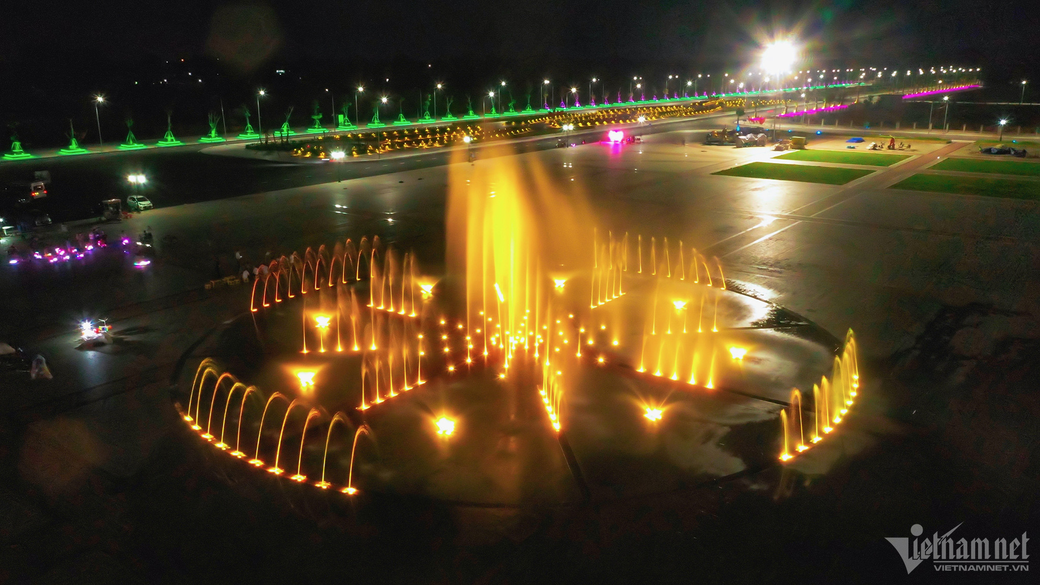 Đài phun nước 7 màu là một trong những tiểu cảnh nổi bật tại quảng trường.