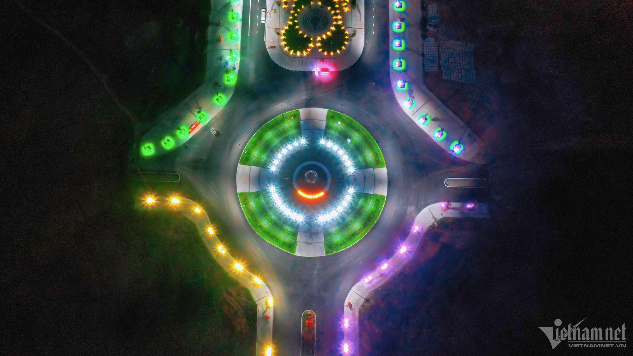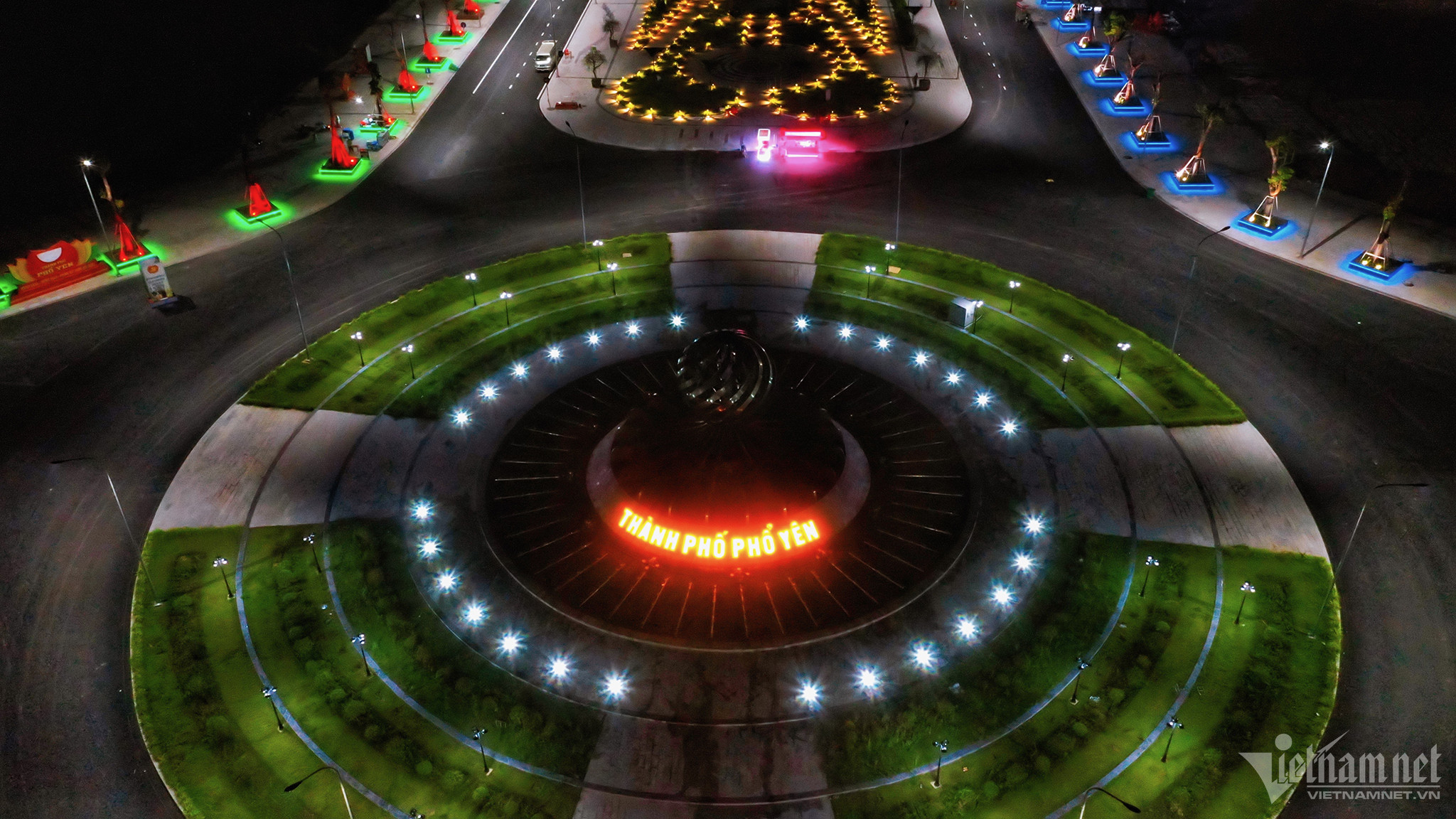 Vòng xoay ở đầu lối vào quảng trường được thiết kế đẹp mắt với biểu tượng về một thành phố dẫn đầu các huyện, thị, thành trong tỉnh và cả khu vực phía Bắc về thu hút đầu tư FDI (với 28 dự án FDI).