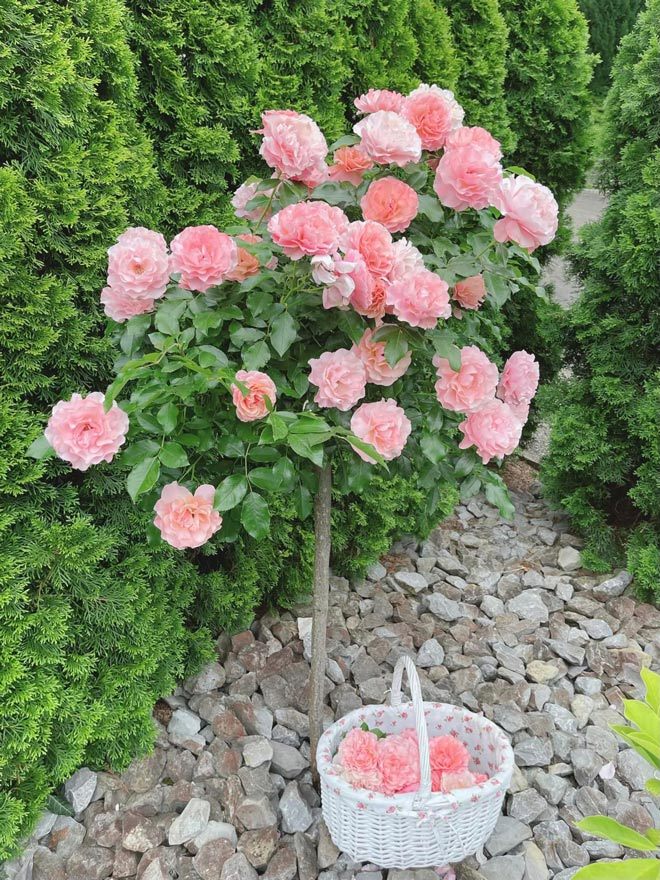 Vì yêu thích hoa hồng, chị trồng nhiều trong vườn nhà. Từ hồng leo Aloha, hồng vàng Sunsprite, hồng Botticelli, hồng của David Austin… đều khoe sắc rực rỡ. Sắc hoa tô điểm giúp vợ chồng chị Dung được nạp thêm năng lượng sau những giờ làm việc căng thẳng. Nơi đây là không gian thiên nhiên tuyệt vời giúp hai con của chị biết yêu thương, vun đắp cho những cây xanh kể từ khi chúng chỉ là những hạt mầm mới nhú.