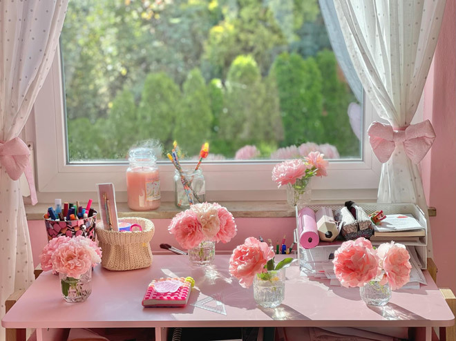 | Hoa được chị hái và trang trí phòng ốc vô cùng xinh đẹp, lộng lẫy. |