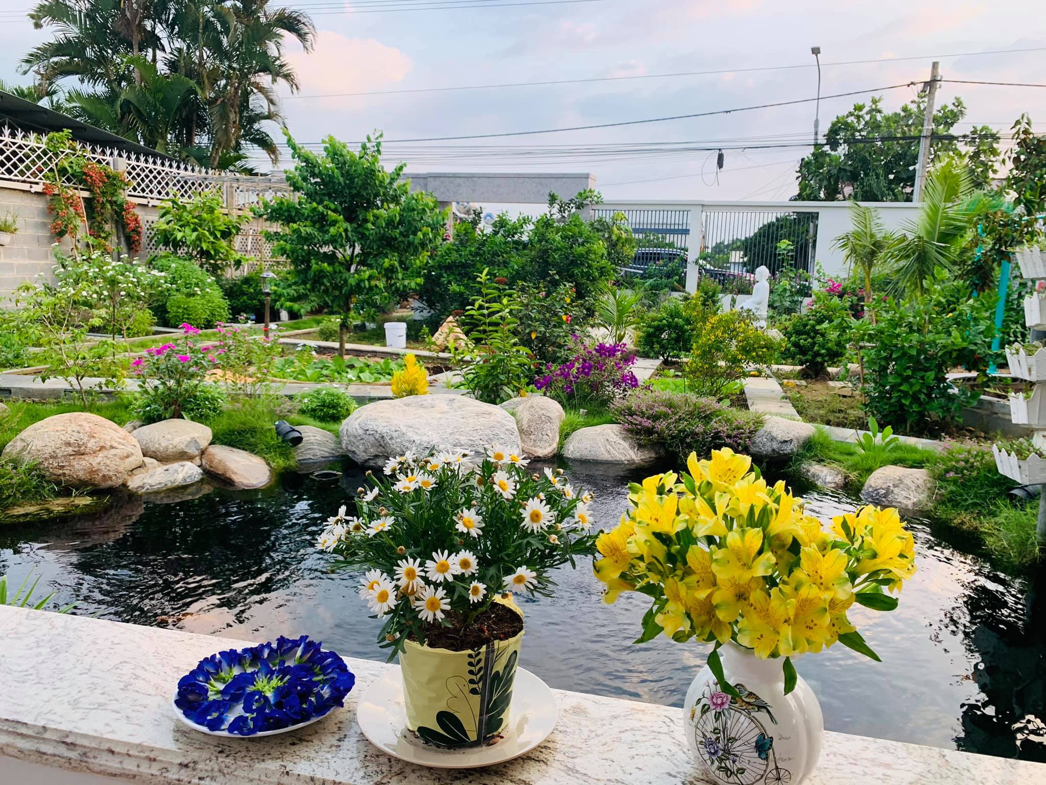 Khu vườn của gia đình chị Dương Tưởng ở huyện Vĩnh Cửu, tỉnh Đồng Nai gây ấn tượng bởi không gian được quy hoạch khoa học, đẹp mắt, tràn ngập cây cối, hoa lá.