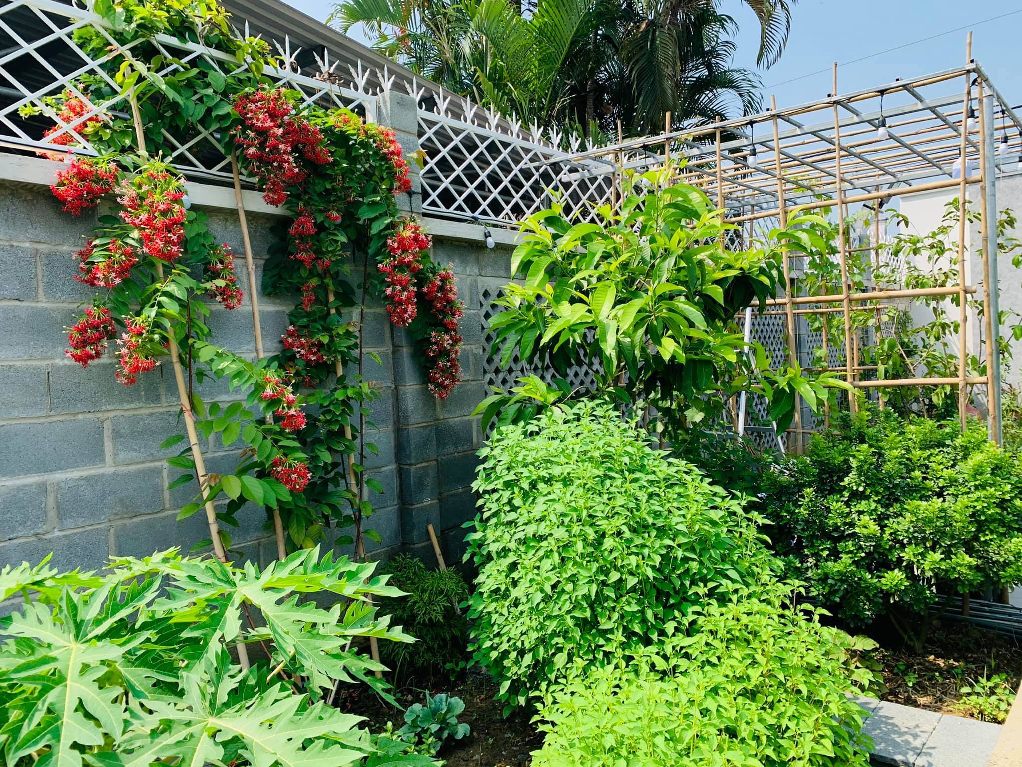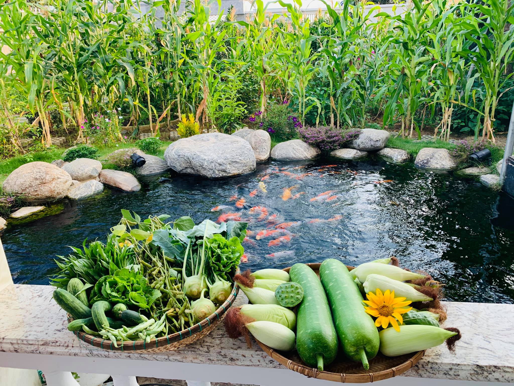 Trong vườn hiện có rau thơm, rau cải, su hào, bắp ngô, cà tím,... và một số loại dưa. Bà mẹ 1 con còn trồng thêm một số loại thân leo như bầu, dưa chuột.