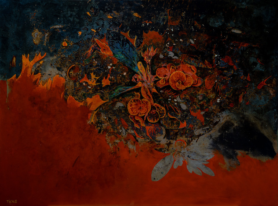 Bằng cách sử dụng các kỹ thuật trên sơn mài như kỹ thuật dùng bạc mịn, vẽ xuyên lớp, kết hợp 3 sắc son, cùng việc kết hợp các thủ pháp nghệ thuật như đảo ngược những mảng tối sáng, dùng ngôn ngữ biểu tượng… Văn Tịch đã tạo ra một khu vườn sinh động và rực rỡ", giám tuyển Vân Vi chia sẻ.