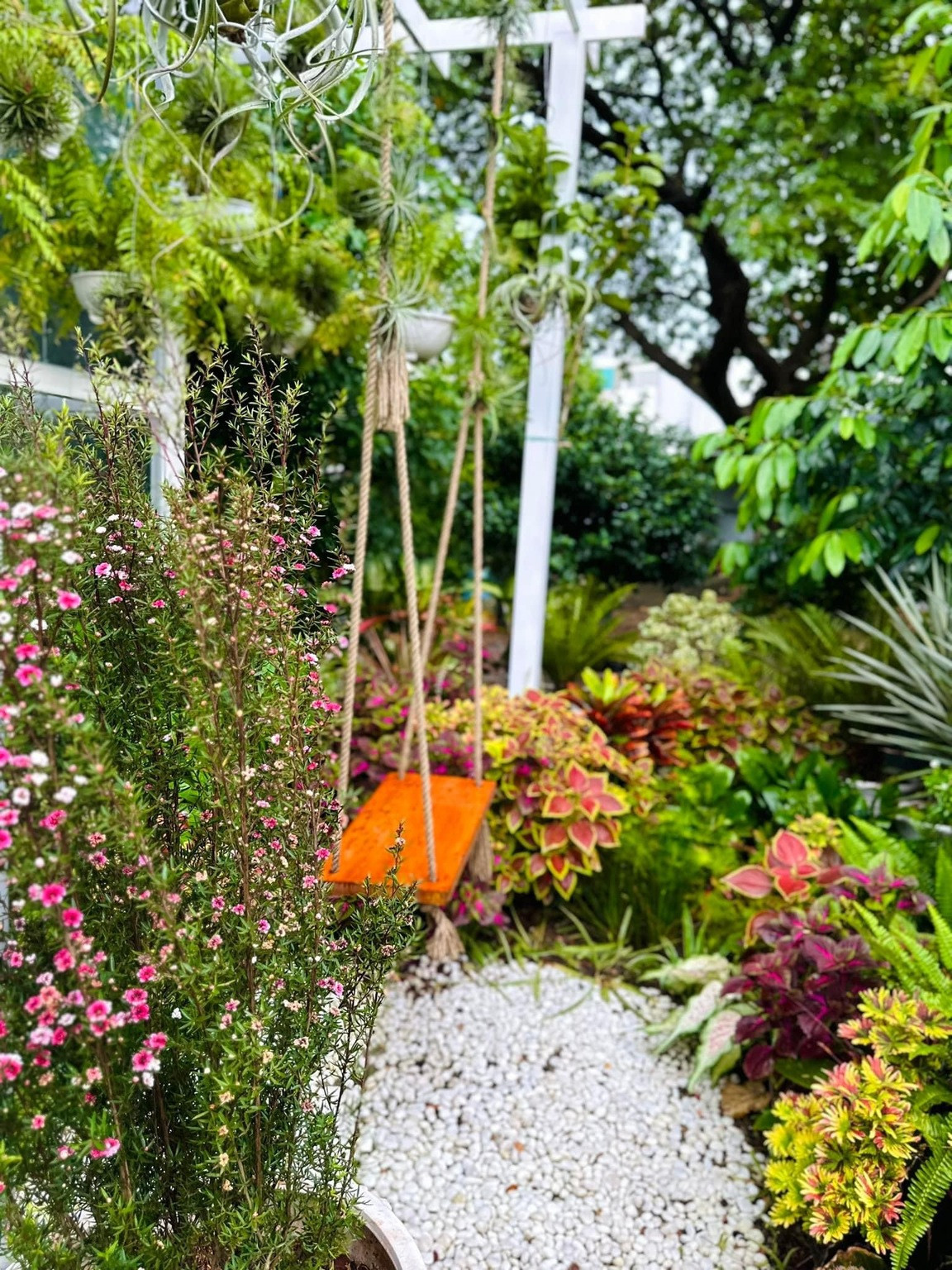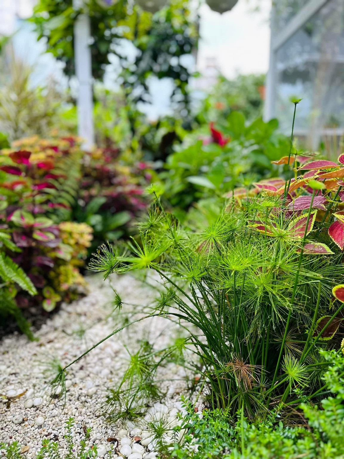 Trung tâm khu vườn trồng đa dạng các loại hoa như: Mẫu Đơn, Phù Dung... Con đường đá thơ mộng dẫn đến một nhà ươm cây không khí.