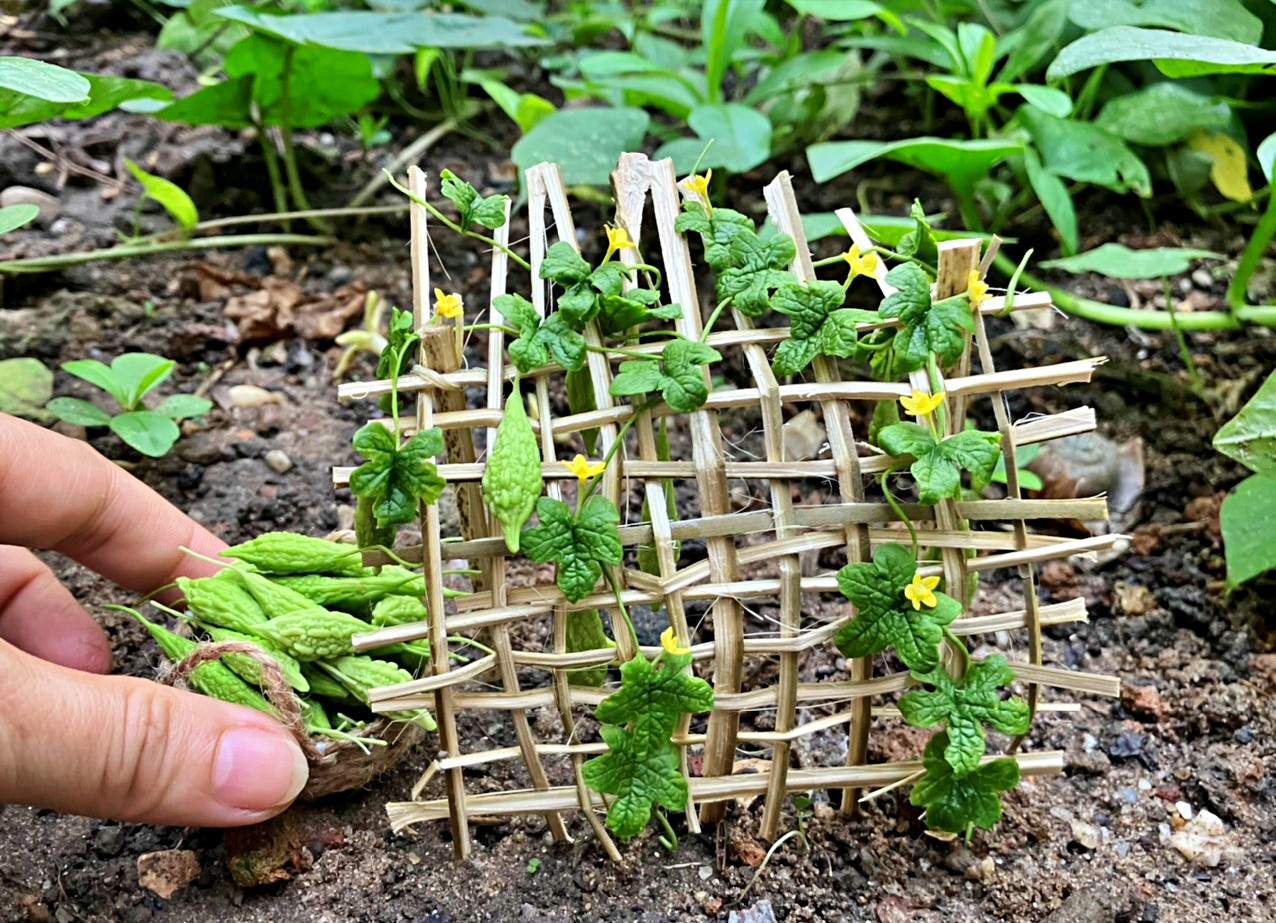 “Nhưng việc tìm được trái khổ qua thật có kích thước siêu tí hon như vậy để lấy vân cũng rất khó. Tôi phải canh giàn khổ qua thật vừa ra trái, đã có đường gân nhưng chưa kịp lớn để lấy gân”, chị kể.