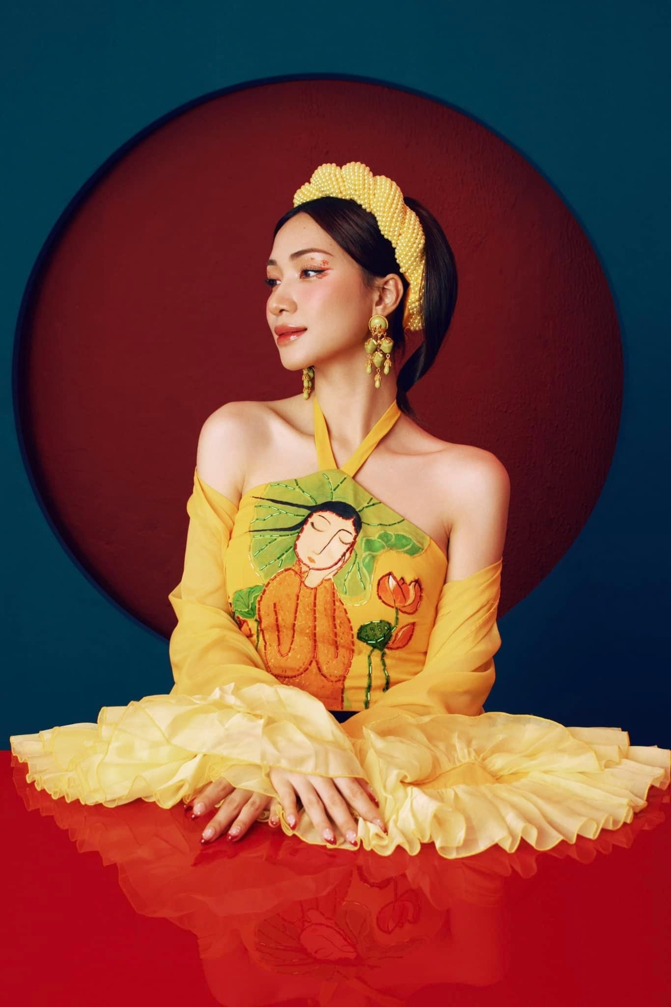 NTK Quyên Nguyễn hỗ trợ Khúc Mạnh Quân và Hòa Minzy hiện thực hóa các bản vẽ, chọn lựa vải, cắt, phác thảo, vẽ hoa sen bằng tay và đính kết thủ công 100%.