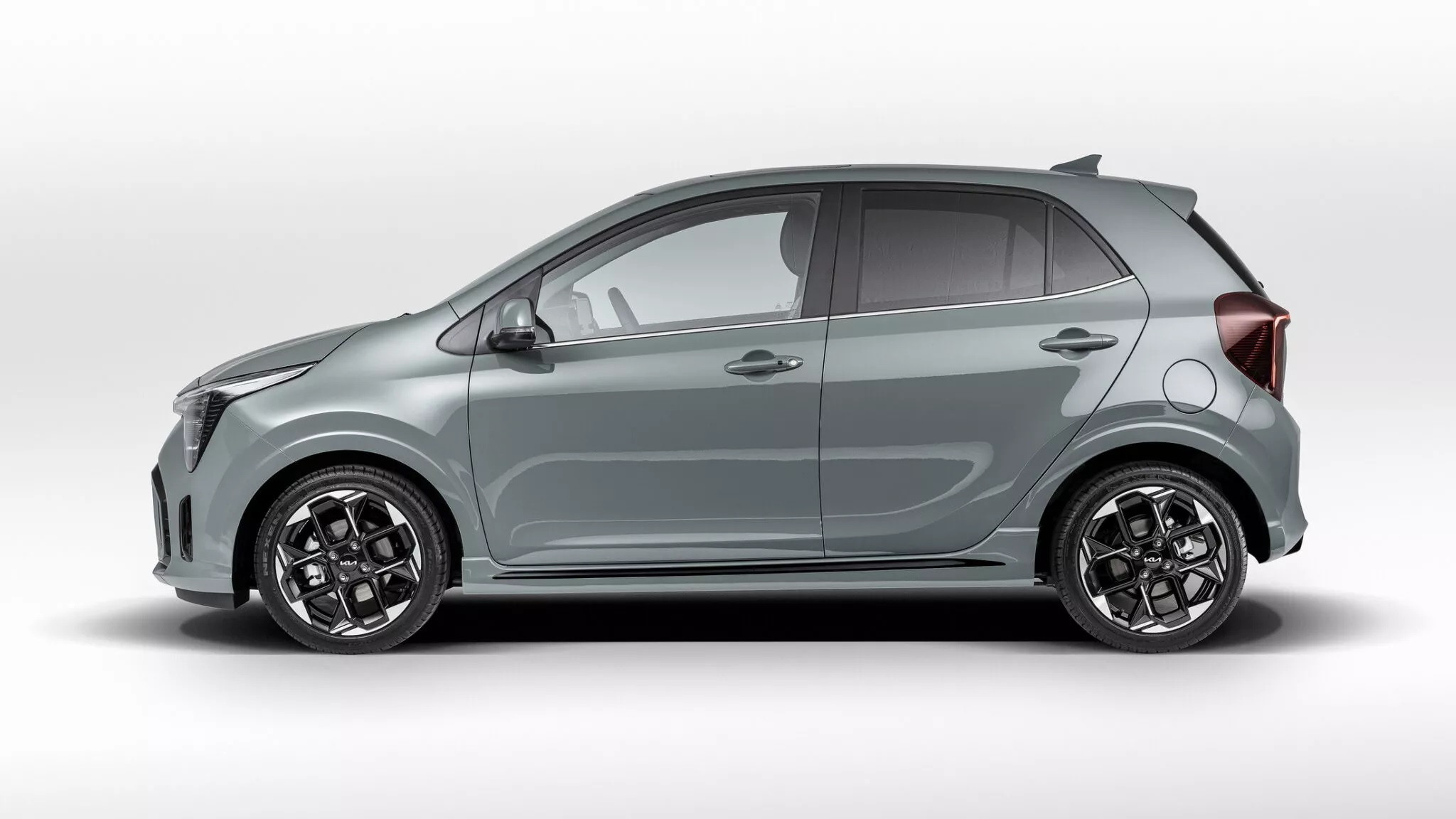 Phiên bản tiêu chuẩn sử dụng bộ mâm kích thước 14 inch, trong khi bản GT-Line dùng bộ la-zăng hợp kim 16 inch hai tông màu vuông vức, góc cạnh bắt mắt. Bảng màu của Kia Morning 2024 bao gồm 9 tùy chọn, trong đó có 4 mã màu mới (Signal Red, Smoke Blue, Sporty Blue và Adventurous Green).
