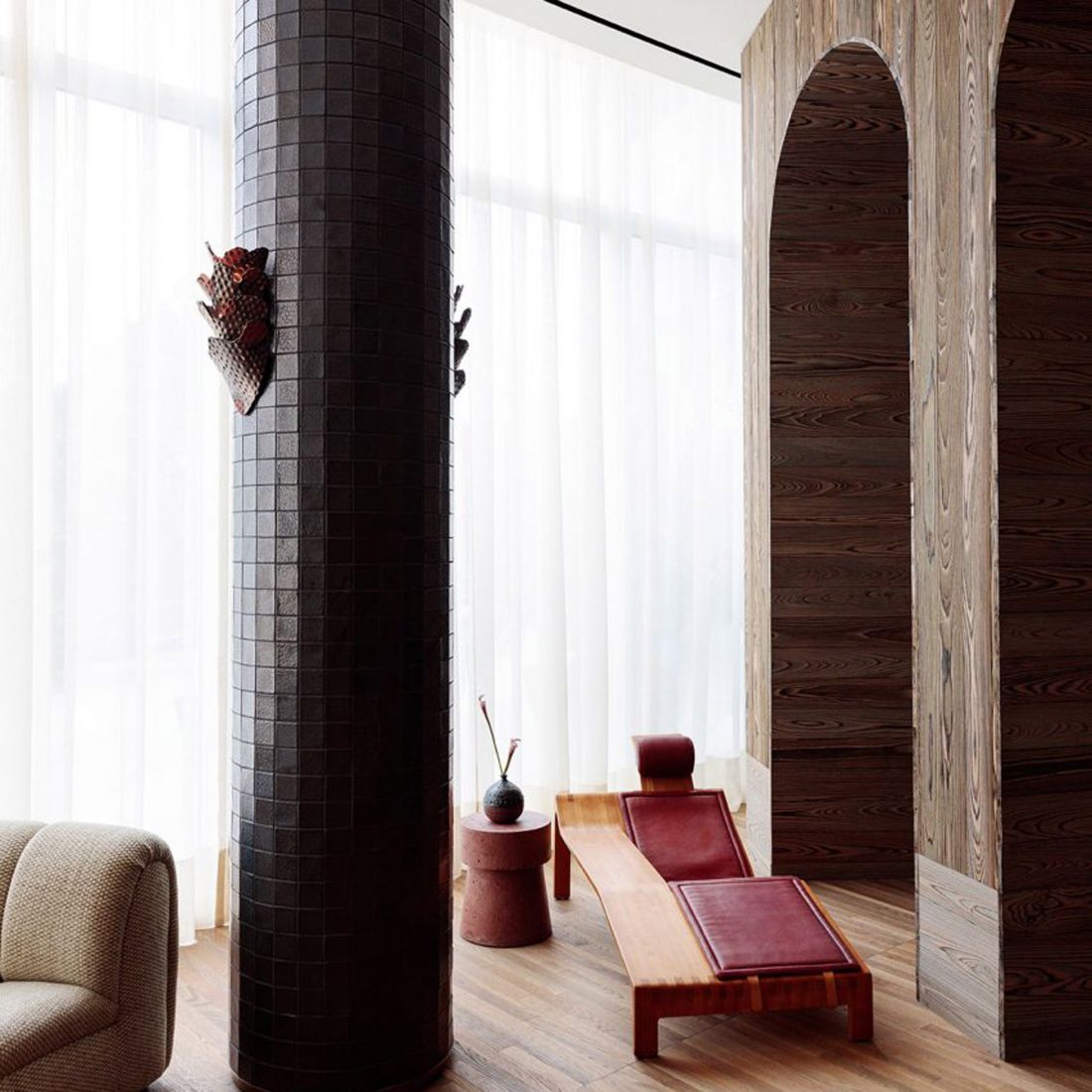 Các studio kiến trúc Taller Lu'um và At-te đã tận dụng cảnh quan tươi tốt này khi thiết kế nội thất, nơi họ đã áp dụng một loạt các vật liệu tự nhiên có nguồn gốc địa phương. Ví dụ, các bức tường của dãy phòng khách đã được quét bằng đất và vôi, trong khi mái nhà được lợp bằng lá cọ khô.