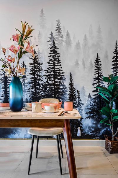 Mảng tranh tường gợi nhớ đến những rừng cây rộng lớn ở xứ sở Bắc Âu.