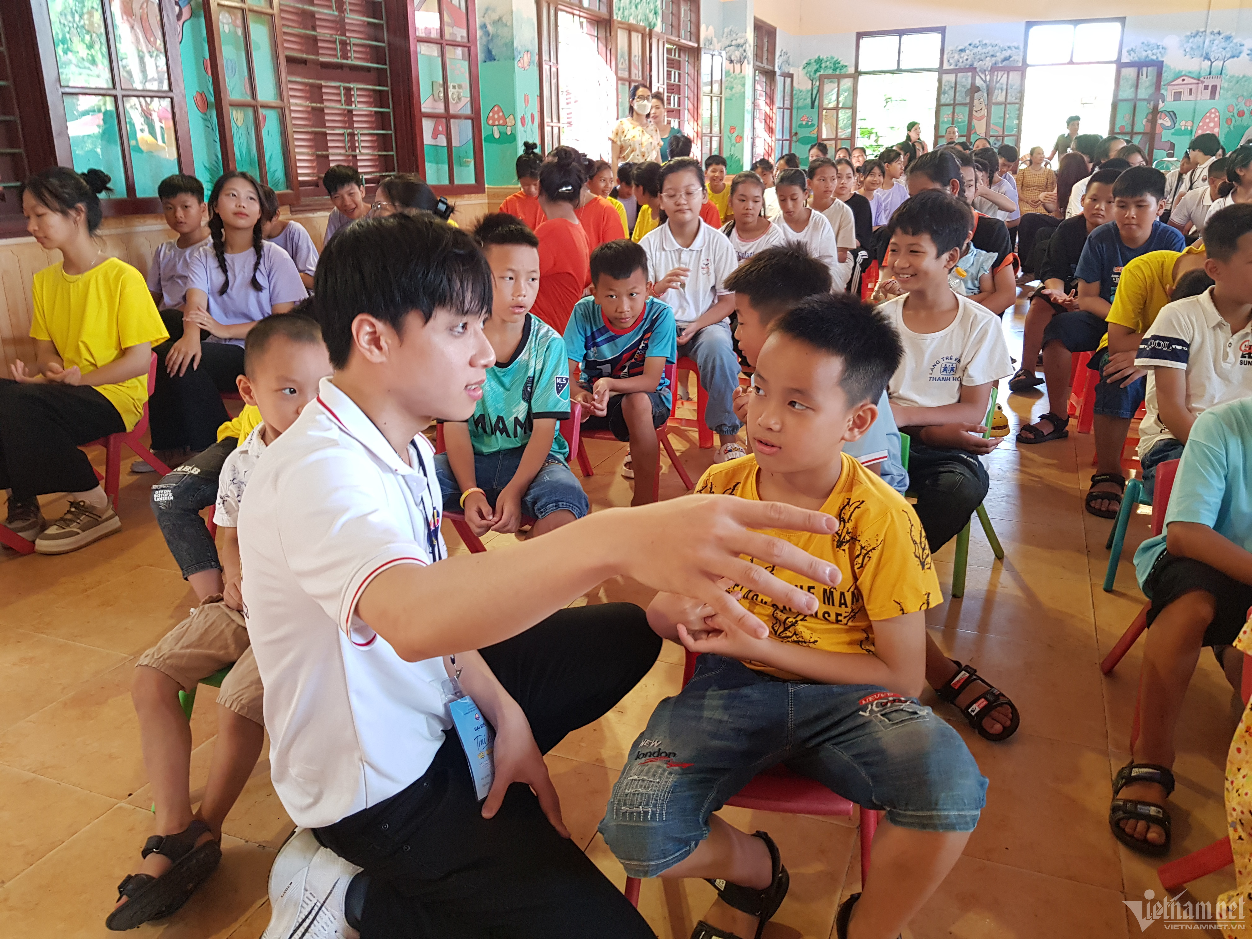 Thời gian lưu lại Làng trẻ em SOS Thanh Hóa của đoàn đại biểu thanh, thiếu niên kiều bào không nhiều nhưng các bạn trẻ đã tạo được thiện cảm, cùng trò chuyện, vui chơi với các em nhỏ.