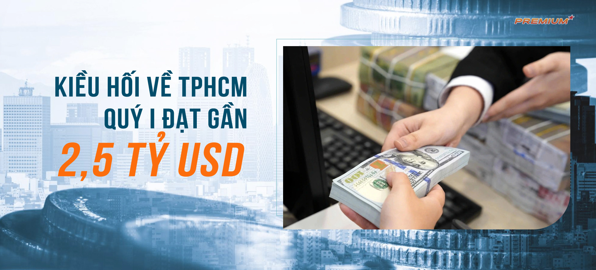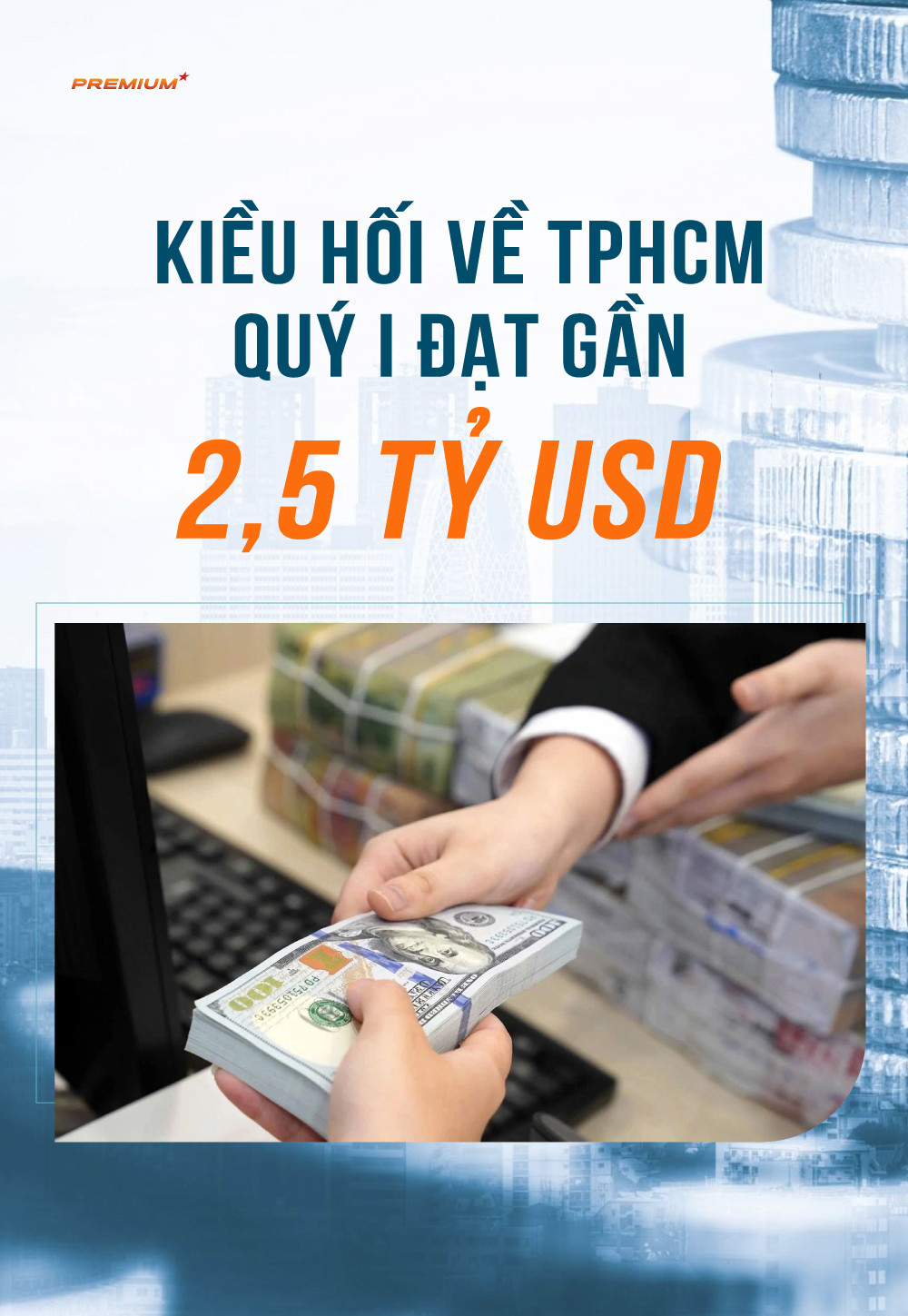 Tổng lượng kiều hối chuyển về TPHCM tính đến cuối tháng 3 năm nay đạt 2,412 tỷ USD, bằng 25,3% so với cả năm 2024.