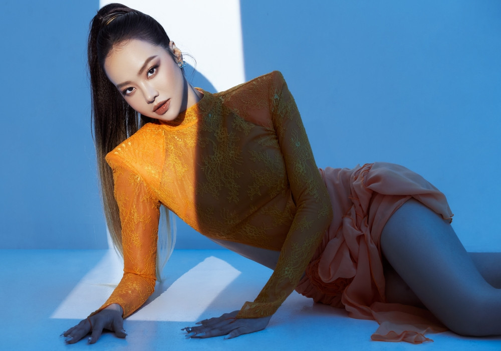 Yêu thích phong cách tối giản, Kiều Ngân diện ba thiết kế màu xanh neon, đen, trắng do người mẫu Như Vân thiết kế. Cô tạo dáng khỏe khoắn, đậm tinh thần thể thao. Người đẹp trang điểm, làm tóc trẻ trung, thể hiện hình ảnh tràn đầy năng lượng.