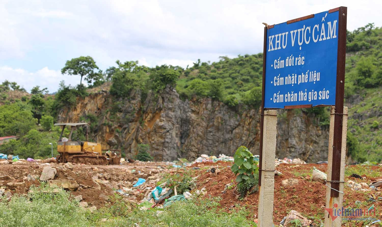 Theo quan sát của PV vào thời điểm đầu tháng 6, lượng chất thải rắn ở đây đã đến mức quá tải. Rác thải chất quá cao đã tràn ra khu vực rộng hàng nghìn m2. Khu vực bãi đổ thải này không có tường rào bảo vệ và chỉ cách khu vực sinh sống của người dân vài chục mét.