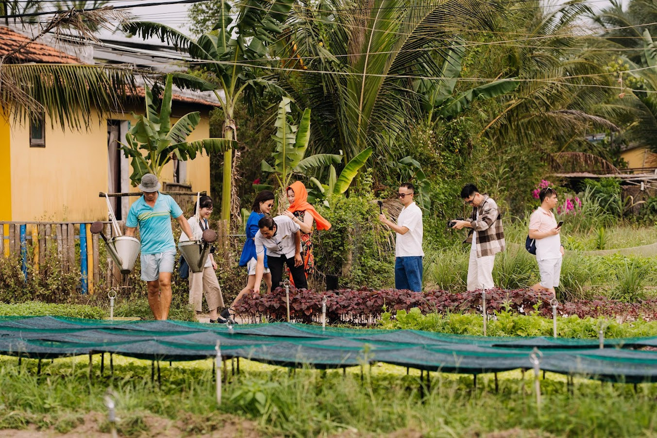 Tới đây, du khách có thể trải nghiệm cuộc sống nông dân thực thụ khi tự tay xới đất, ươm trồng, bắt sâu, tưới nước và thu hoạch các loại rau. Sau đó là thưởng thức đặc sản Hội An chế biến cùng các loại tươi ngon vừa thu hoạch như bánh vạc, hến trộn, tôm hữu, mì Quảng, cao lầu…