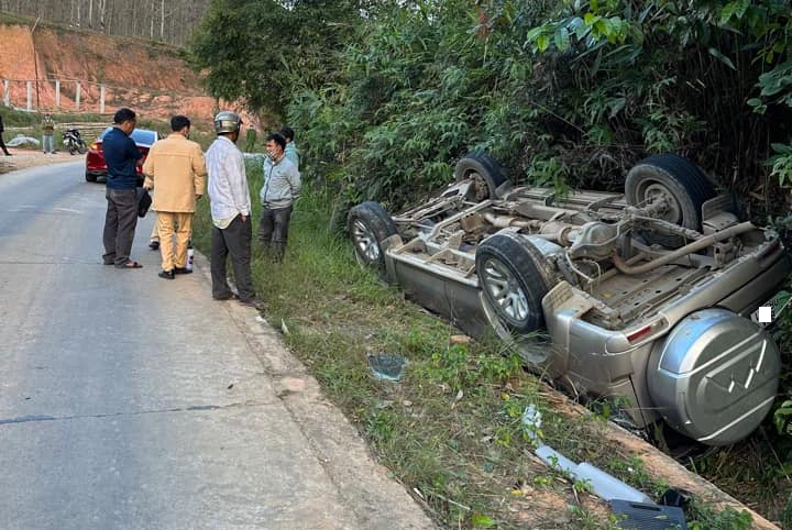 Tài xế vào cua ở tốc độ cao, xe Jeep lật nhào trên đường