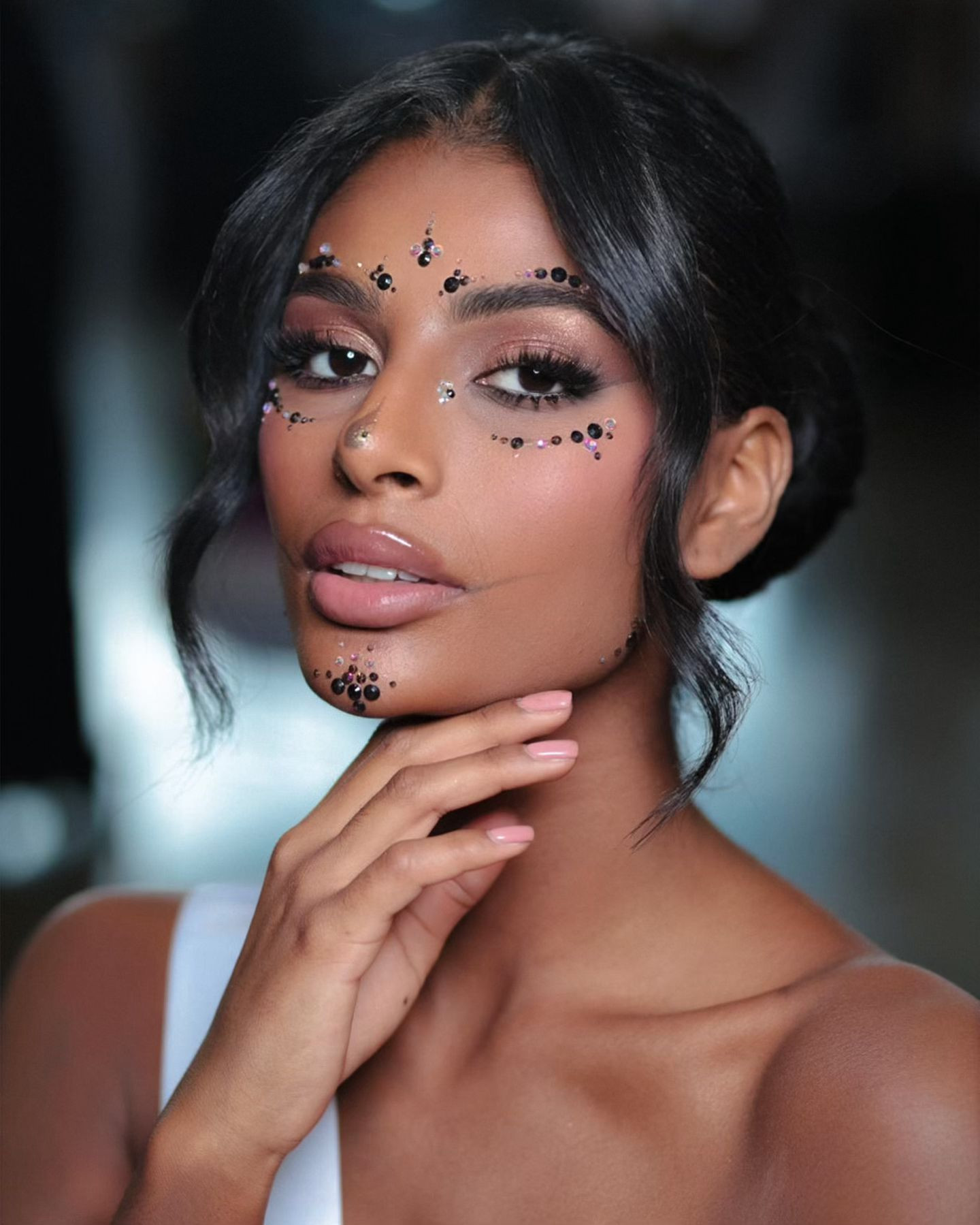 Họa tiết gắn đính trên mắt và mũi cùng hoa, mạng nhện và nhũ lấp lánh trên trang phục giúp từng thí sinh trở nên ấn tượng.
