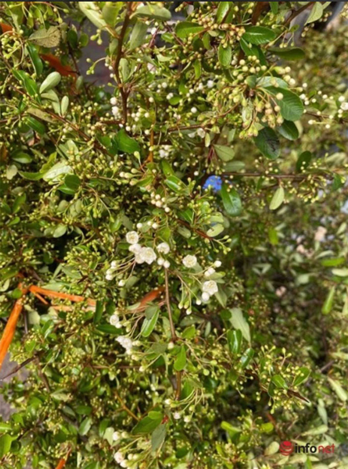 Táo gai là cành hoa dại, mọc nhiều ở vùng núi phía Bắc. Táo gai chi chít nụ, khi nở hoa có màu trắng tinh, mùi thơm nhẹ, từng chùm xen kẽ những chiếc lá xanh nhỏ xinh rất đẹp mắt. Loại hoa dại này lần đầu xuất hiện trên thị trường, thu hút nhiều chị em đặt mua về cắm chơi.