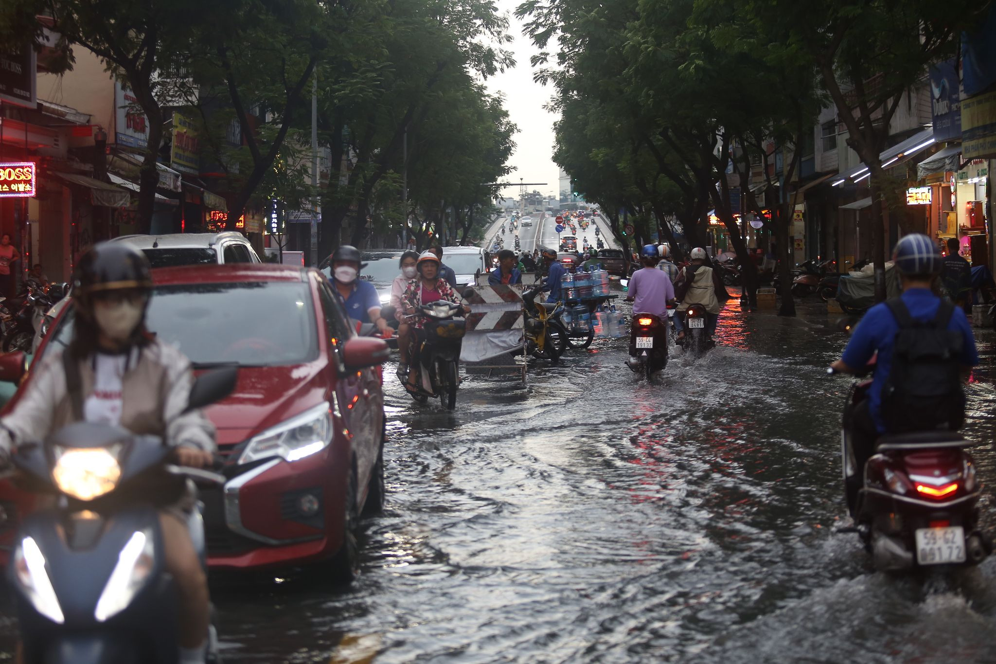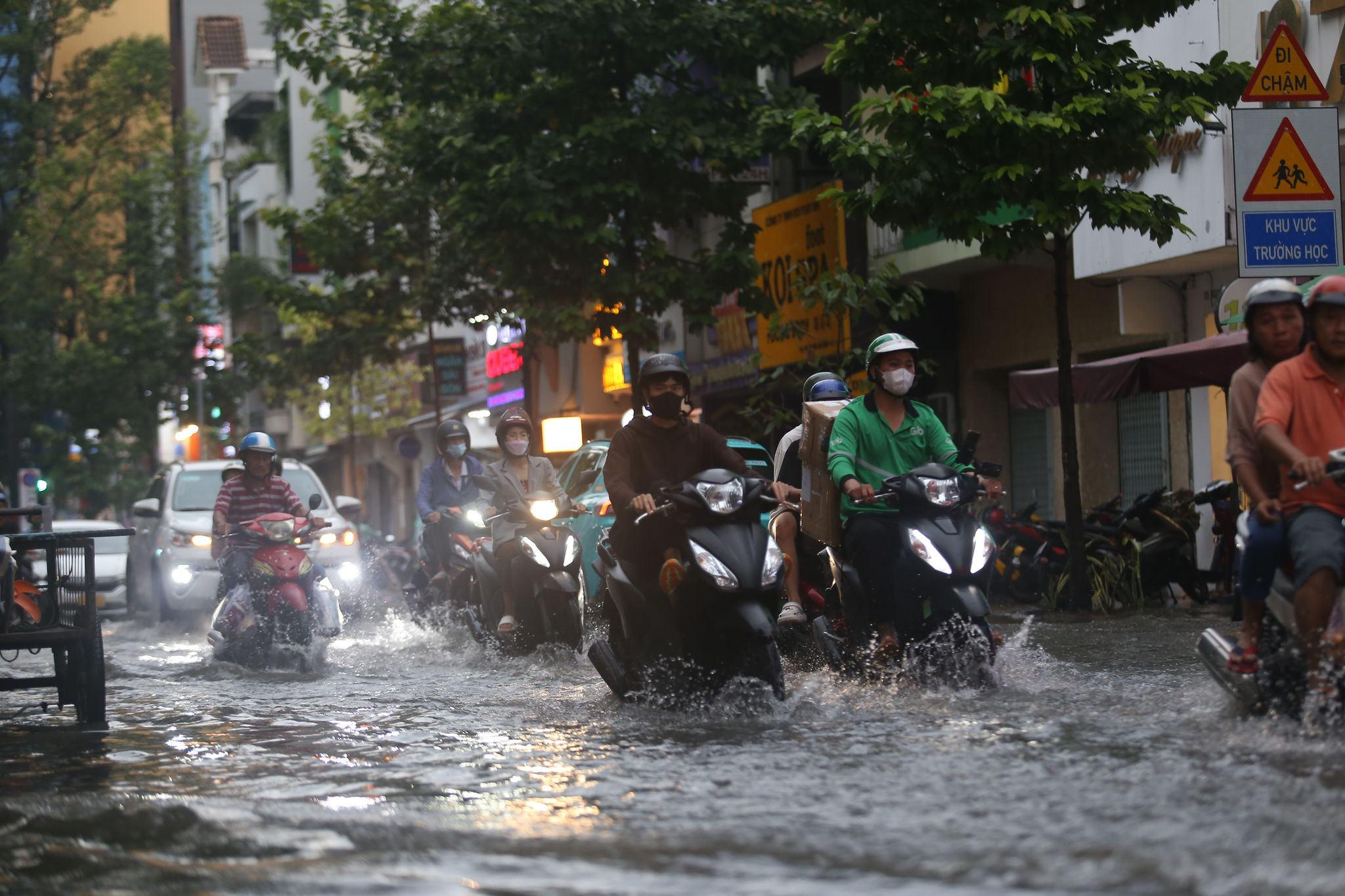 Ghi nhận lúc 17h cùng ngày, tại phường Nguyễn Thái Bình (quận 1, TP.HCM), nhiều khu vực bị ngập nước, nặng nhất là ngã tư Nguyễn Công Trứ - Calmette và ngã tư Nguyễn Thái Bình - Calmette.