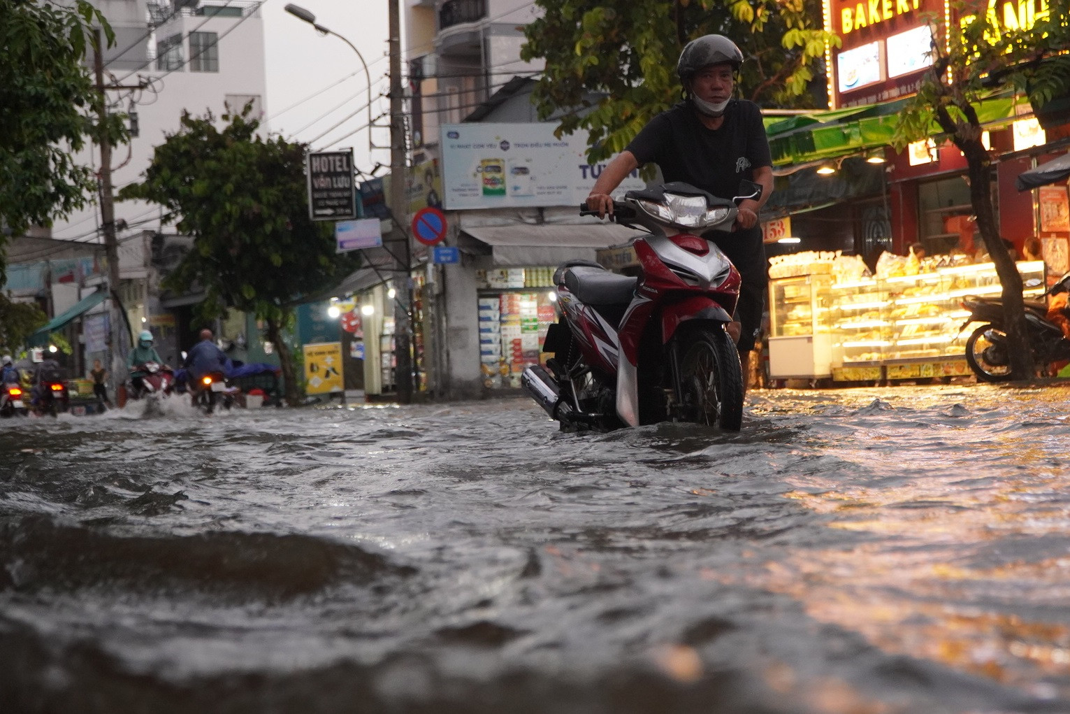 Tương tự, tại quận 7, huyện Nhà Bè, nhiều tuyến đường cũng bị ngập sâu, hàng loạt phương tiện rơi vào tình trạng chết máy.