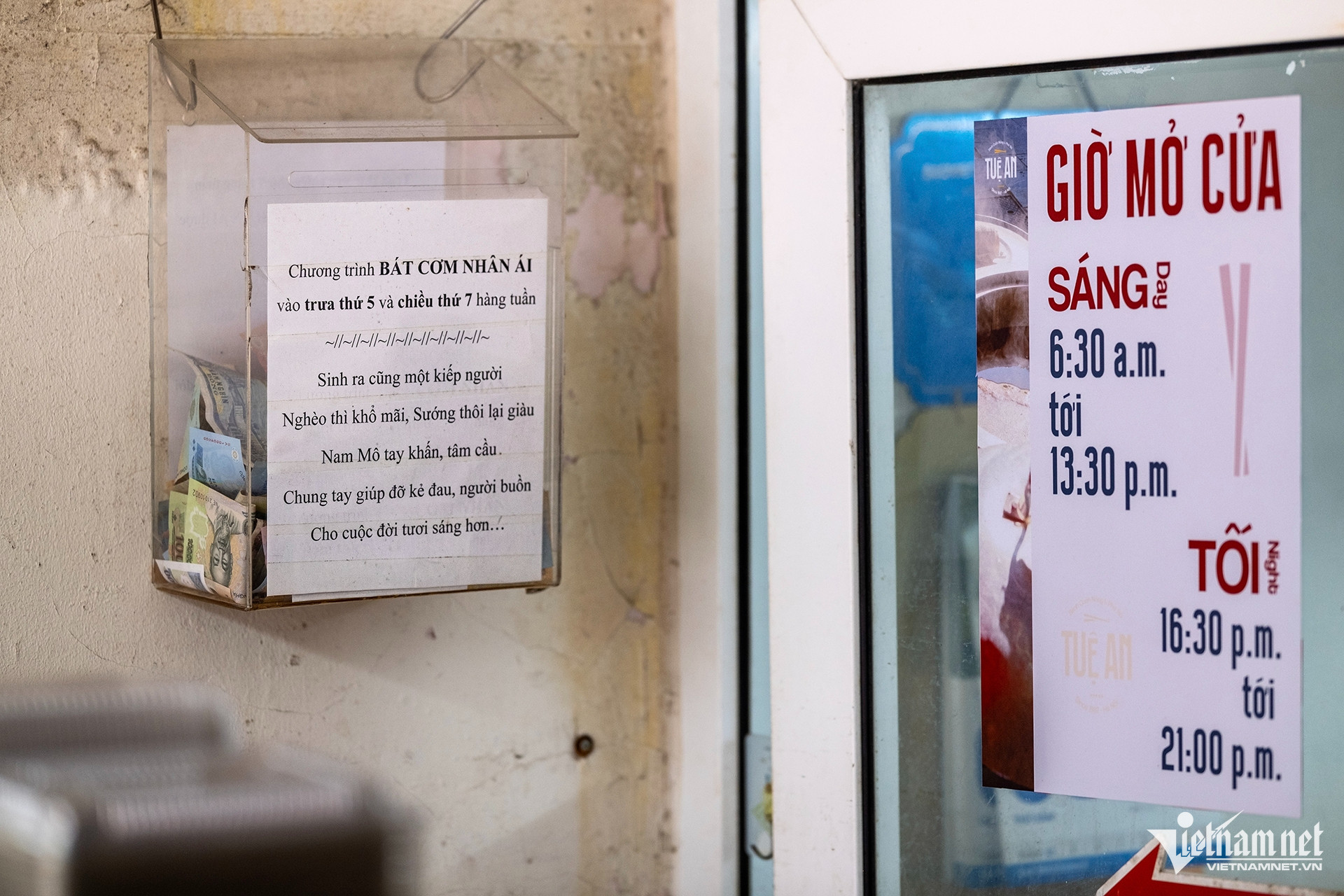 Nhiều khi khách ăn xong, bận việc quên không hạ số xuống. Có người đến ăn phở "treo", chị vẫn sẵn lòng bưng ra ngần ấy bát mà không hề tính toán thiệt hơn. Chị làm biển treo lên là để những người thực sự cần đi qua có thể thấy và thoải mái vào ăn mà không cần phải dò hỏi xem hôm nay còn phở miễn phí hay không.