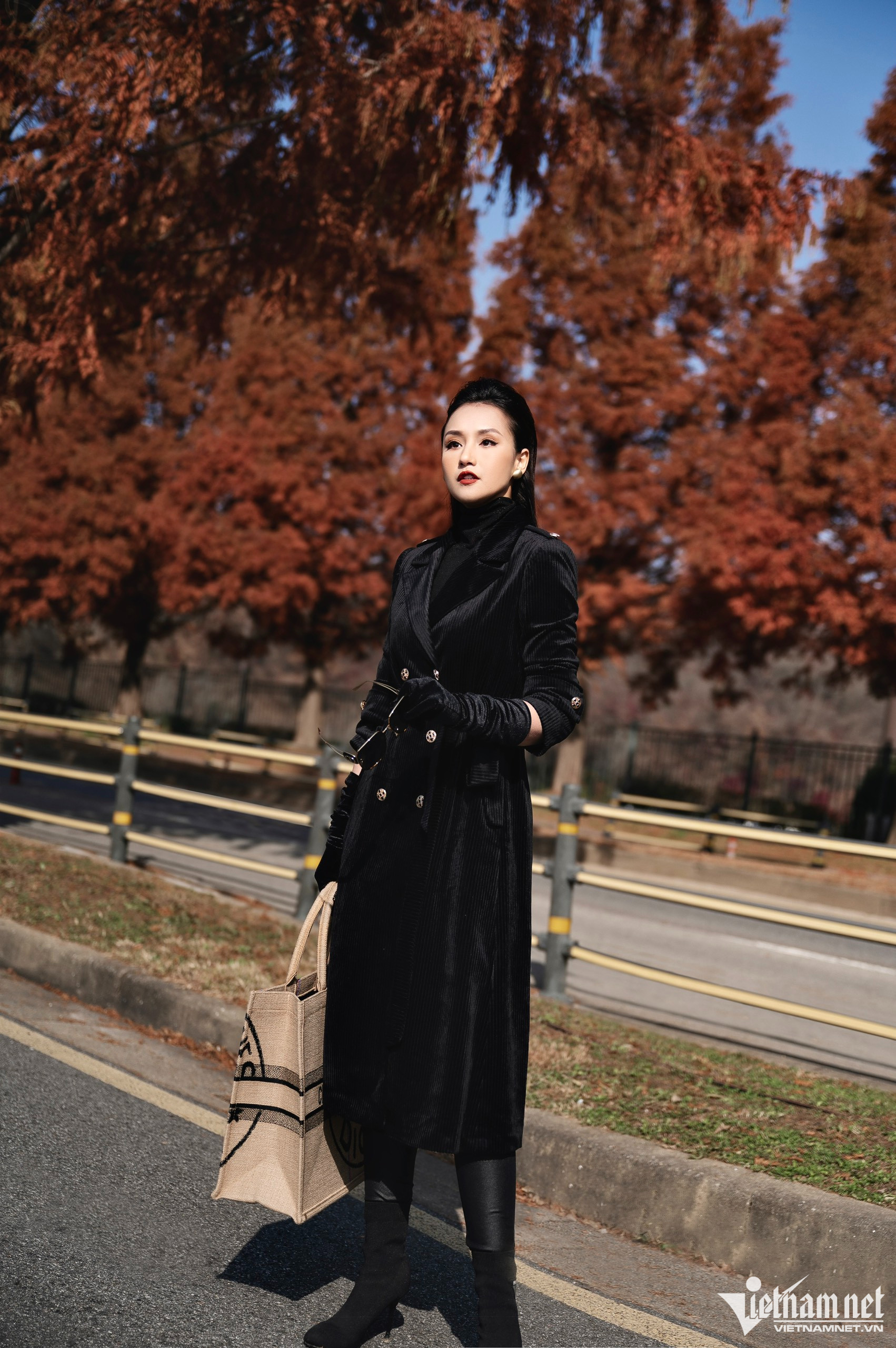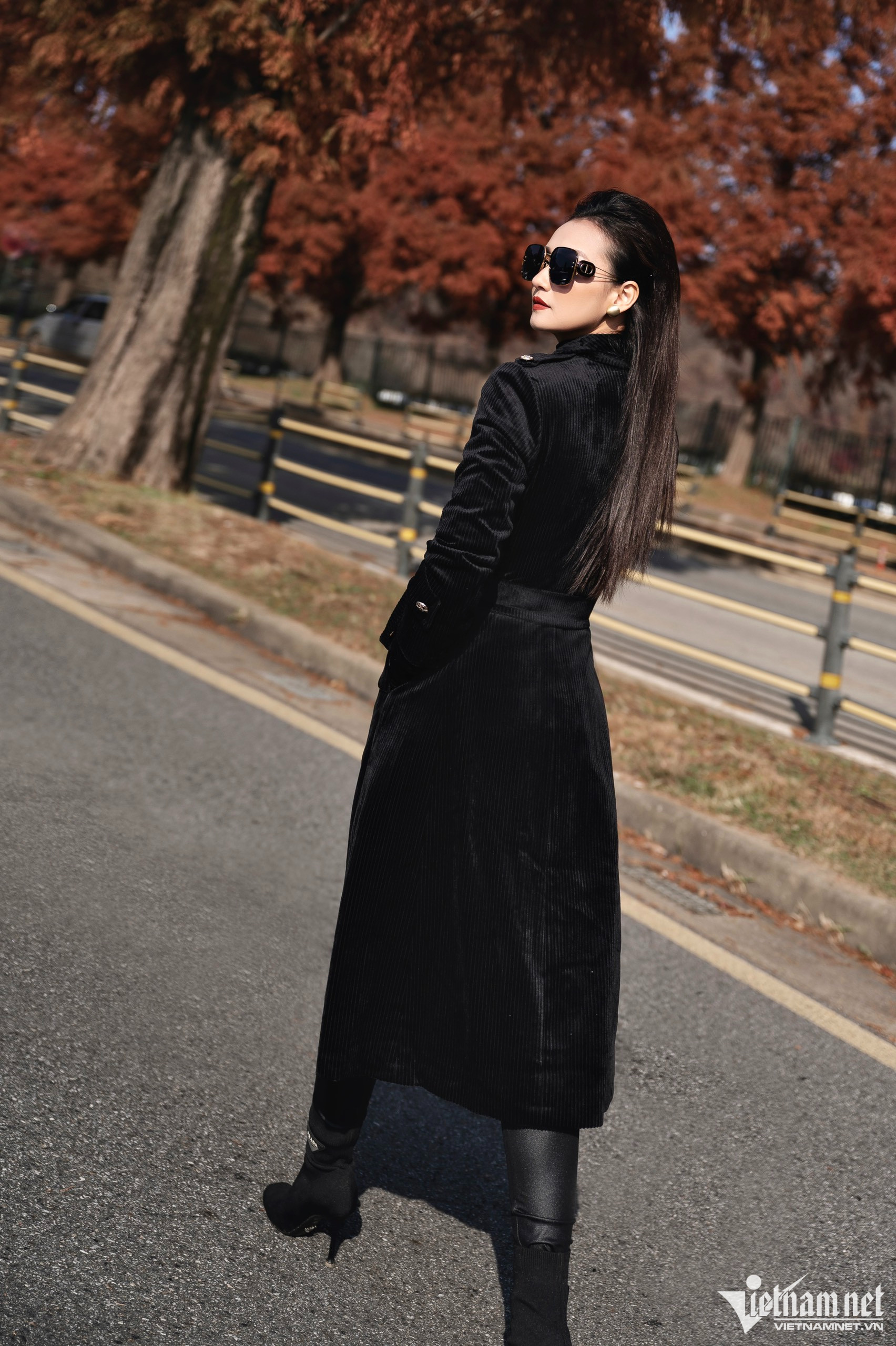 Lã Thanh Huyền diện cả cây đen tạo dáng sang chảnh. Cô chia sẻ với VietNamNet: "Với Huyền, làm việc và tận hưởng cuộc sống luôn là hai điều song song, Huyền học cách sắp xếp thời gian hiệu quả để mình vẫn đảm bảo công việc và vẫn có thời gian chăm sóc gia đình, đi du lịch, gặp gỡ bạn bè, chăm sóc bản thân".