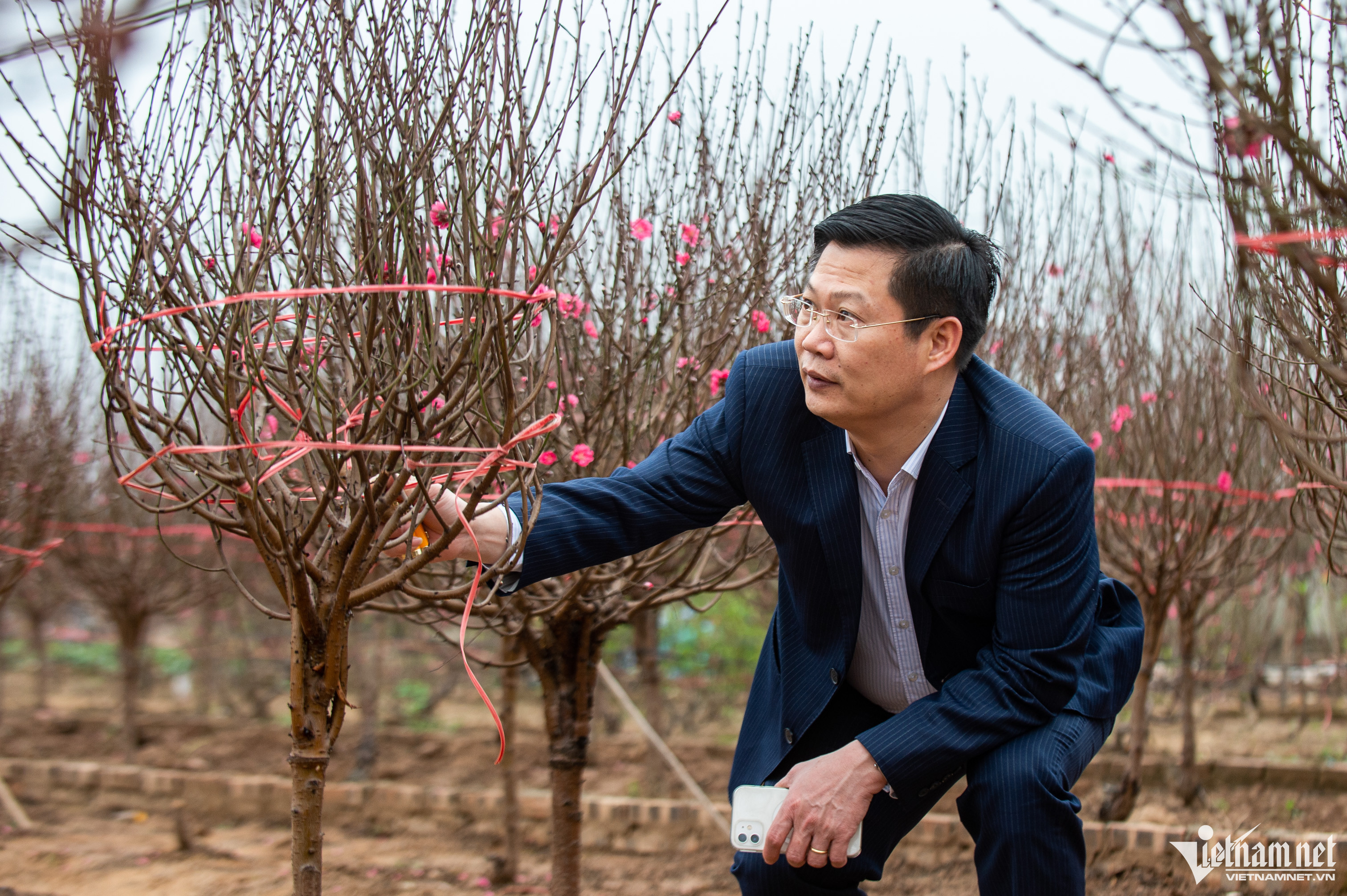Đây là năm thứ hai anh Đào Văn Huy kinh doanh đào Tết. Anh cho biết, chỉ nhập loại đào tròn cỡ nhỏ thường được cắm trên bàn thờ. "Chưa có nhiều kinh nghiệm buôn bán nên tôi đầu tư vừa phải, chủ yếu là khảo sát thị trường trước. Hôm nay tôi chỉ nhập khoảng 3 triệu đồng cho 30 cành đào tròn", anh Huy nói.