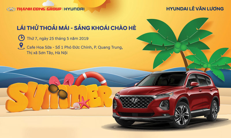 Hyundai Lê Văn Lương sẽ triển khai chương trình “Lái thử thoải mái - Sảng khoái chào hè” vào ngày 25/05/2019 tại Thị xã Sơn Tây.