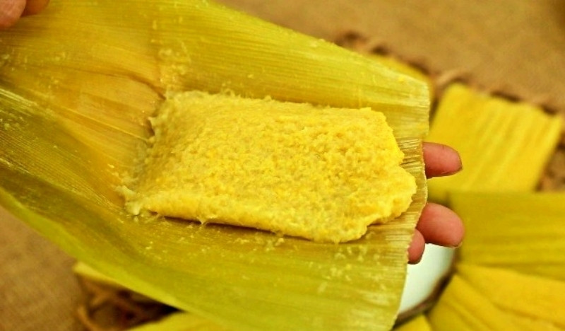 Cắt hai đầu của bắp ngô, bóc phần vỏ ra, chú ý bóc nhẹ nhàng để không làm rách vỏ vì phần vỏ này sẽ được dùng để gói bánh.
