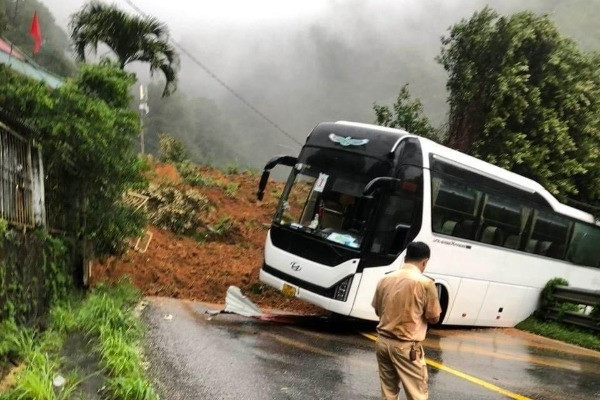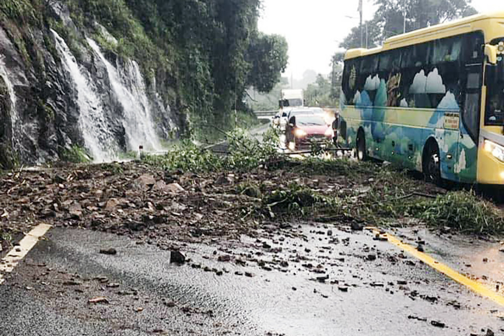 Sáng cùng ngày, trên đèo Bảo Lộc cũng xuất hiện nhiều điểm sạt lở, hàng tấn đất đá sạt xuống Quốc lộ 20. Cây xanh ngã đổ, nằm chắn ngang đường.