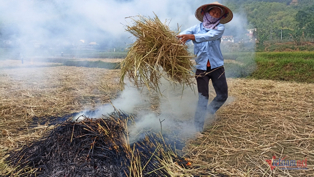 Đang làm việc ngoài cánh đồng lúc 14h30’, ông Hà Văn Nam (62 tuổi, khu phố Ban, thị trấn Hồi Xuân) cho biết, tranh thủ thời tiết nắng nóng, rơm rạ đã khô nên chúng tôi ra dọn dẹp đốt để lấy tro làm phân bón và mai kia lấy nước vào để cày.