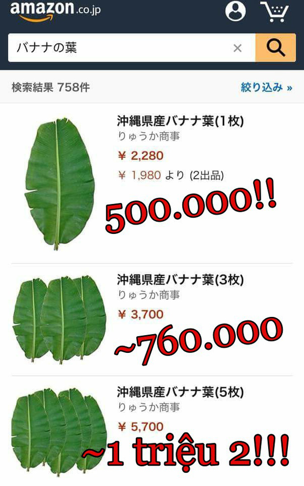 Trước đó, lá chuối cũng từng “gây sốt” khi được bán trên trang Amazon Nhật Bản với giá… gần 500.000 đồng/lá (tương đương khoảng 467.500 đồng vào thời điểm bấy giờ).