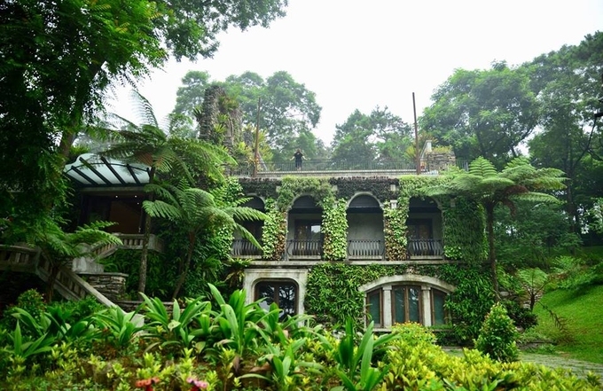 | Một công trình của khu nghỉ dưỡng Melia núi Ba Vì dựng lại trên nền, tường phế tích |