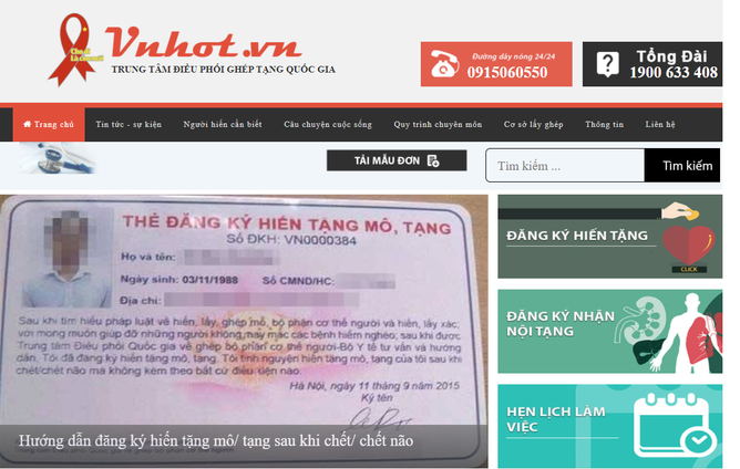 Bạn truy cập vào trang web của Trung tâm tại đường link: http://vnhot.vn và đăng ký trực tuyến tại phần "Đăng ký hiến tạng".