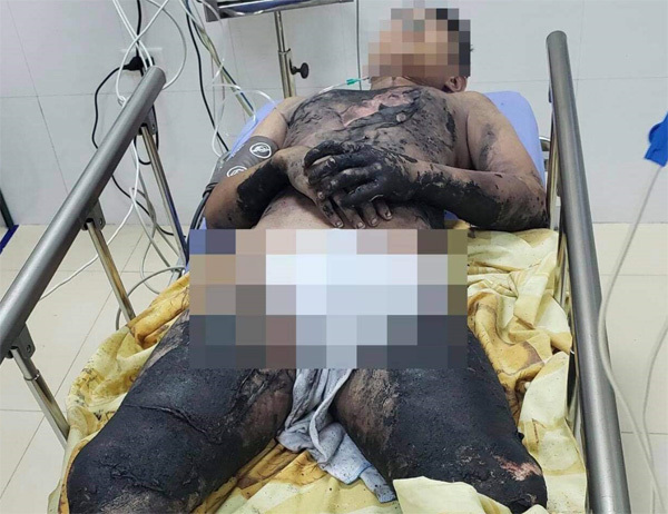 Thiếu niên 14 tuổi dùng cồn để đốt làm thí nghiệm tại nhà thì bị bén lửa lên người gây bỏng vùng ngực, bụng, đùi và 2 cánh tay.